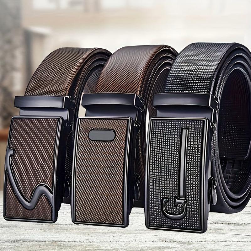 This men's metal automatic buckle belt is perfect for work and business attire. Made with high-quality materials, it offers a sophisticated and professional look.