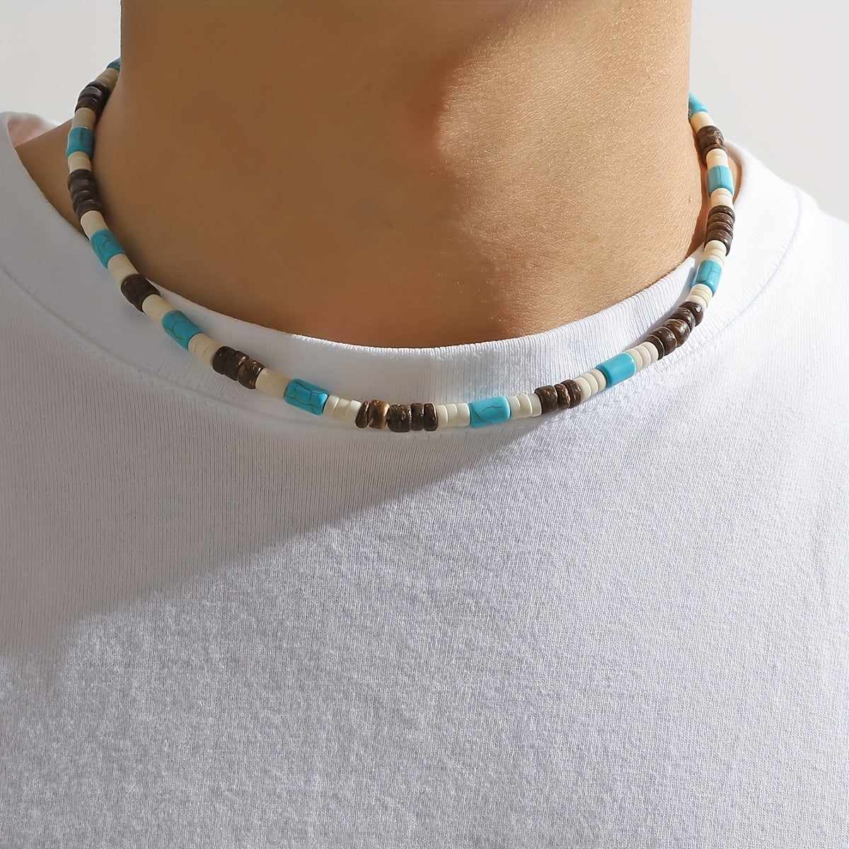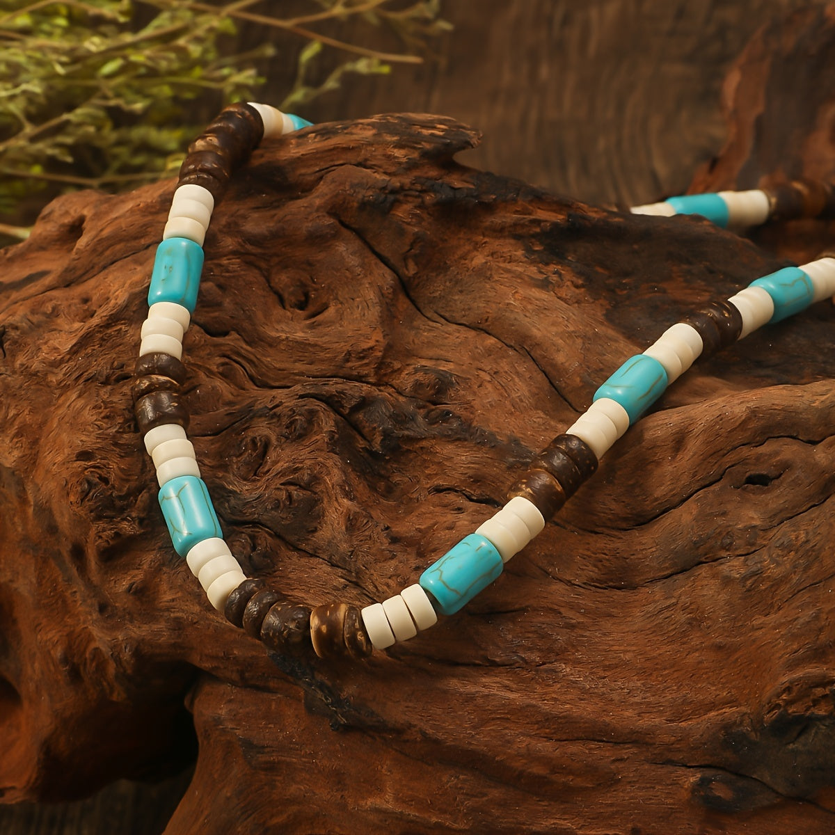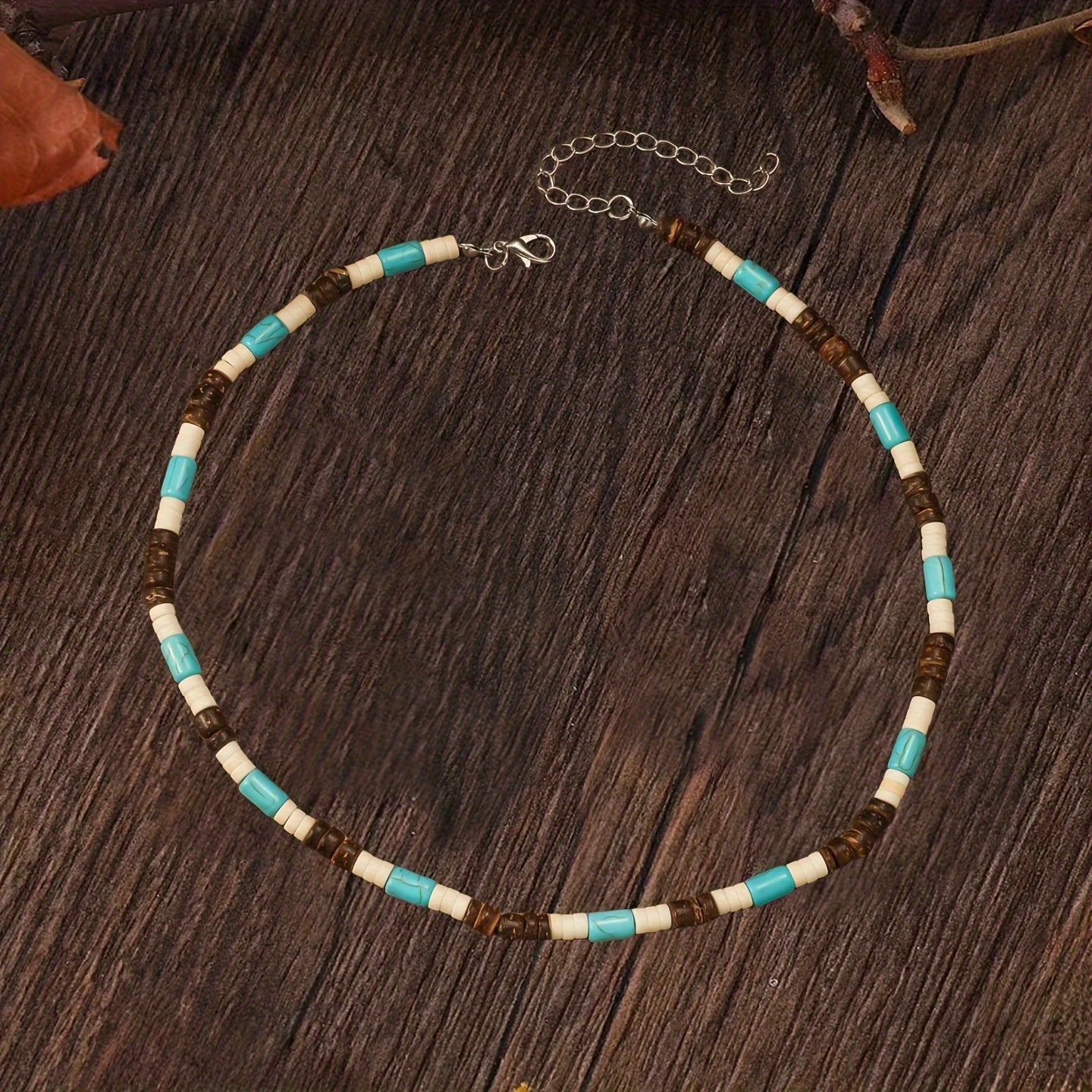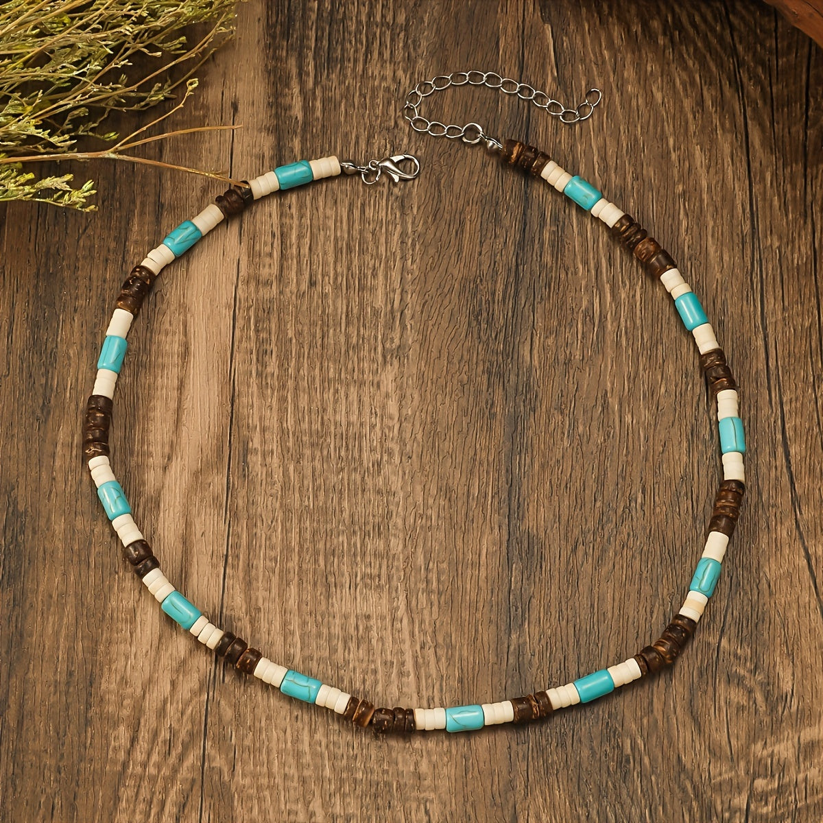 Enhance your daily wear with this retro neck jewelry featuring a combination of coconut shell, geometric design, and pine stone beads.