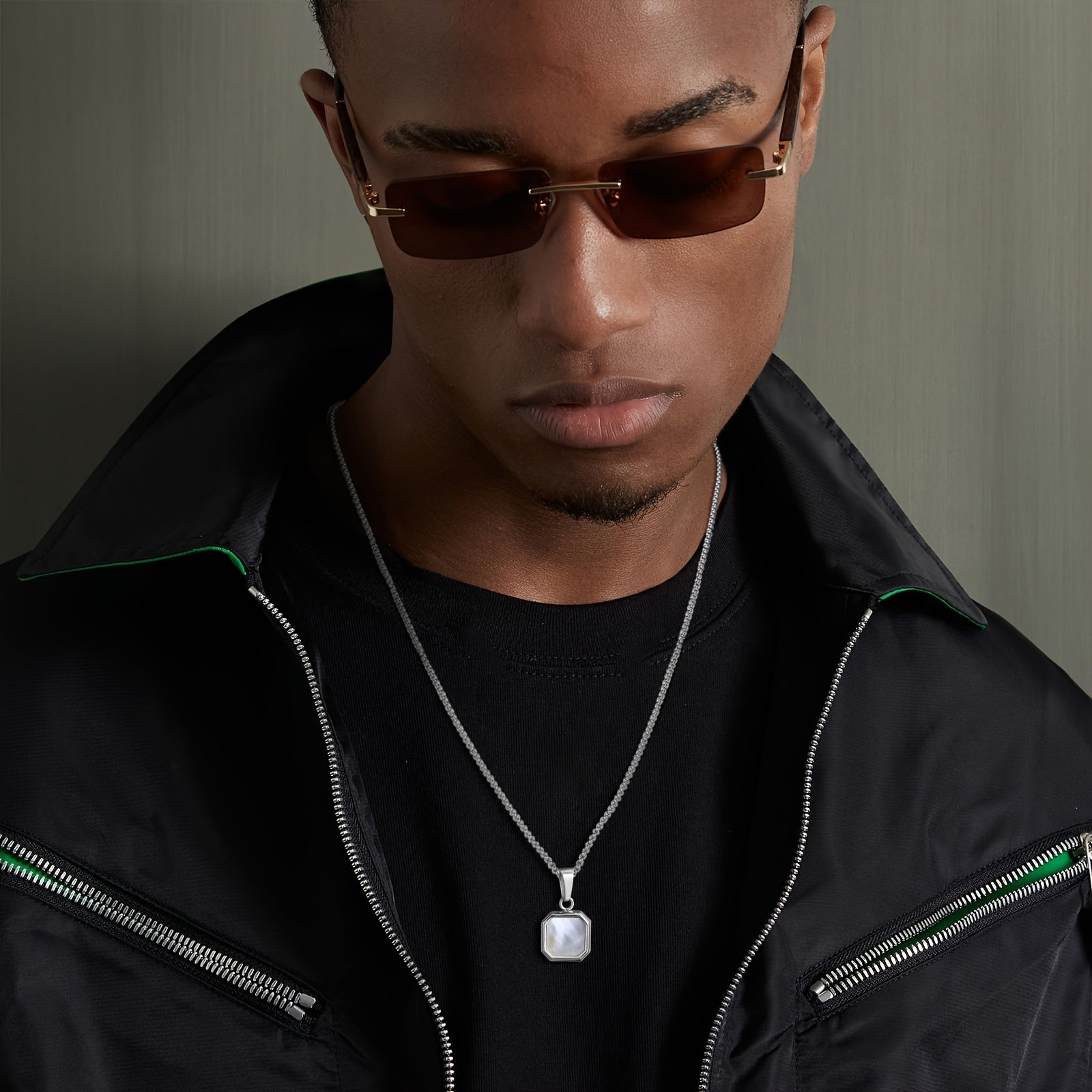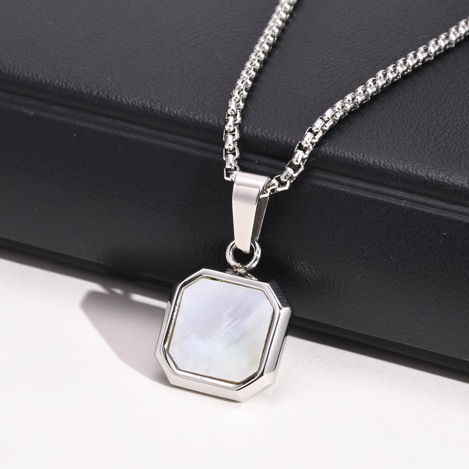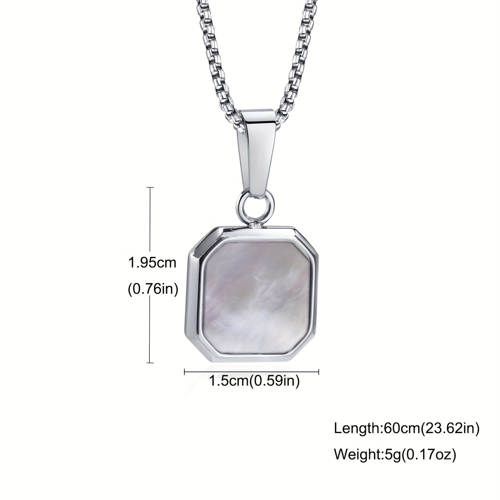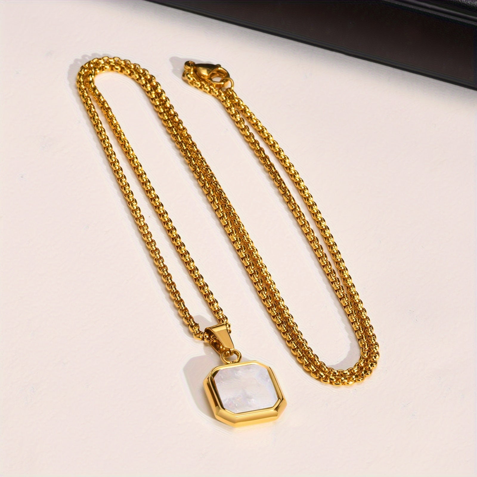 This stainless steel necklace features a square pendant made of natural shell. It is a fashionable geometric accessory that is ideal for daily wear and makes a great gift.