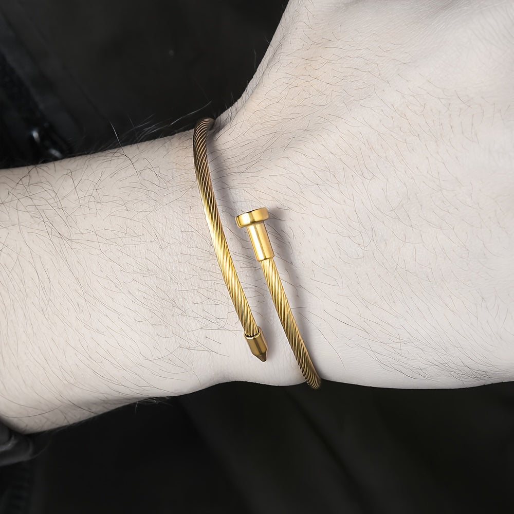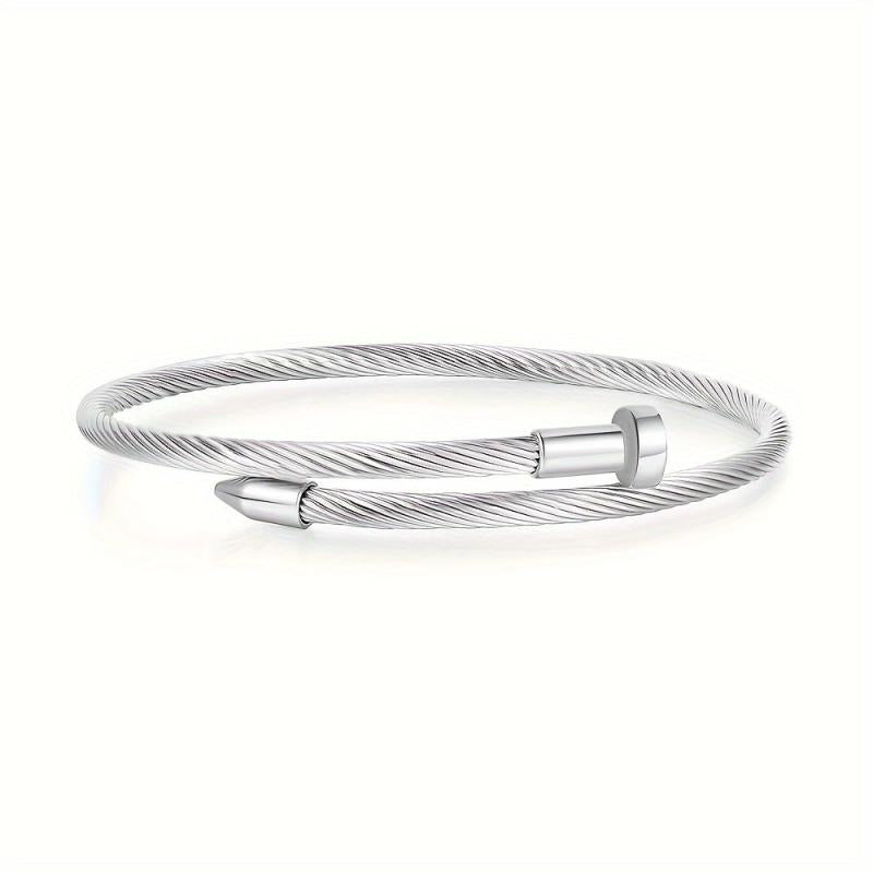 This stainless steel cuff bracelet features a textured finish, making it a fashionable and versatile accessory for daily wear or vacation outfits. It is durable and stylish, perfect for any occasion.