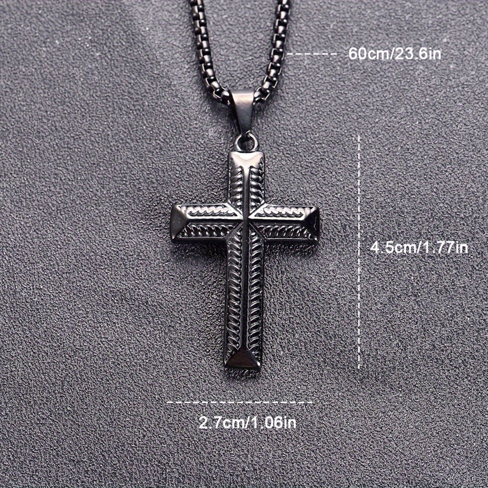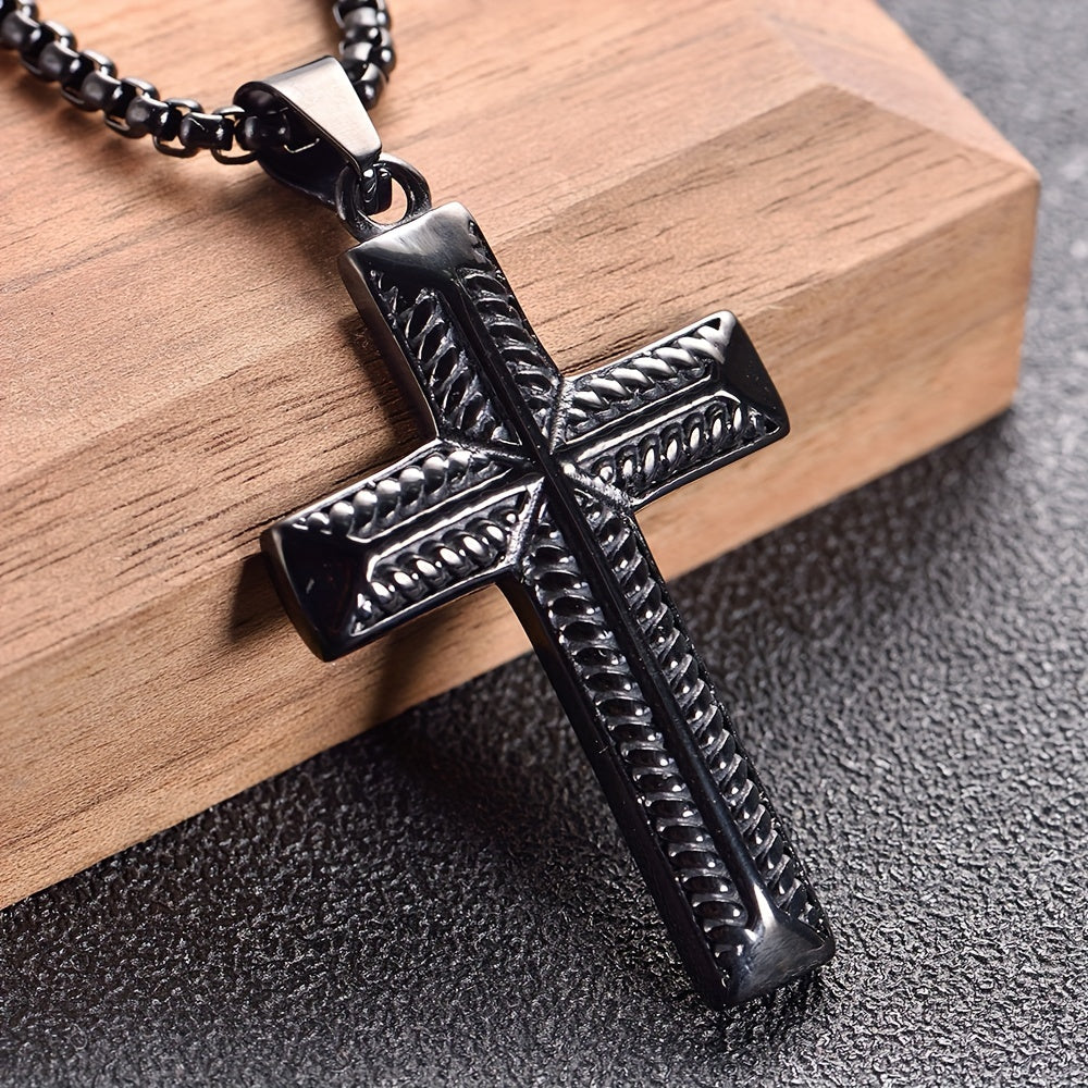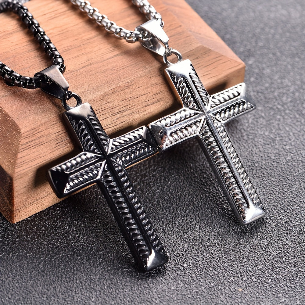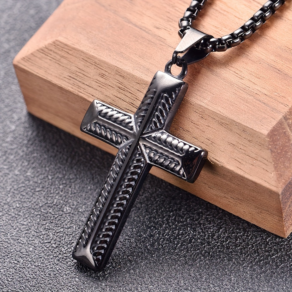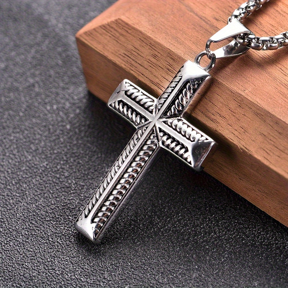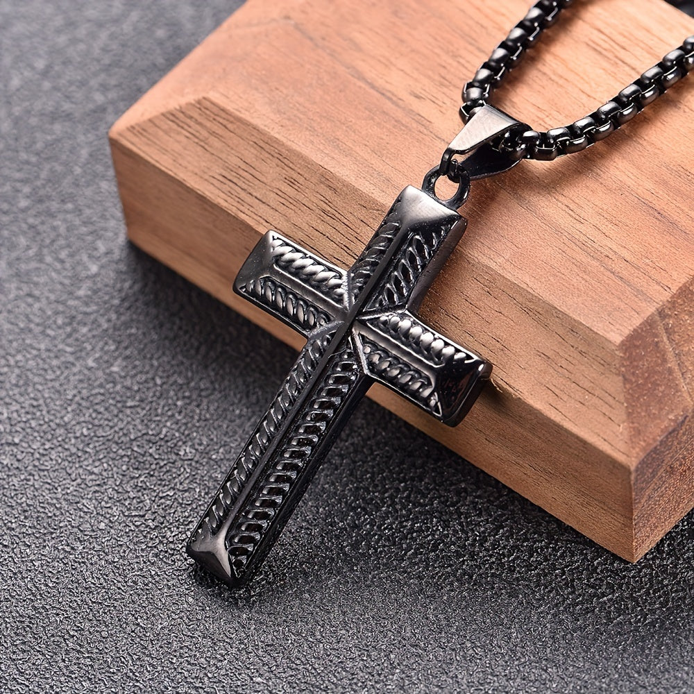 Enhance your style with this European and American men's pendant featuring a cast stainless steel design with full light Zealand rope pattern cross.