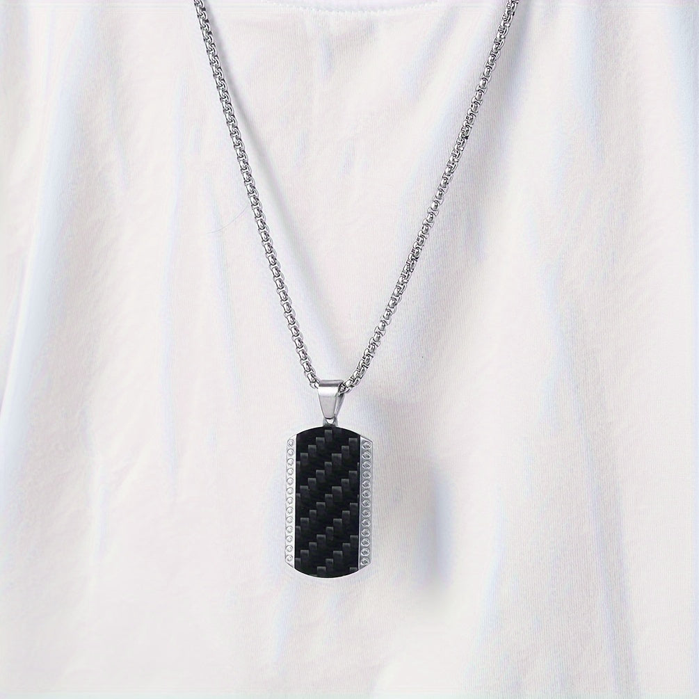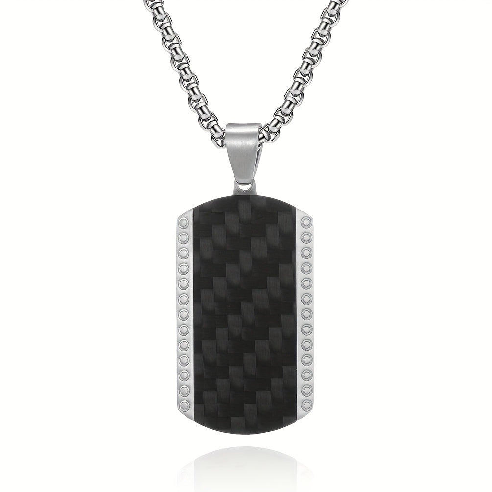 Elegantly crafted men's pendant featuring titanium steel with carbon fiber inlay. This retro-style necklace pendant is perfect for boys and men.