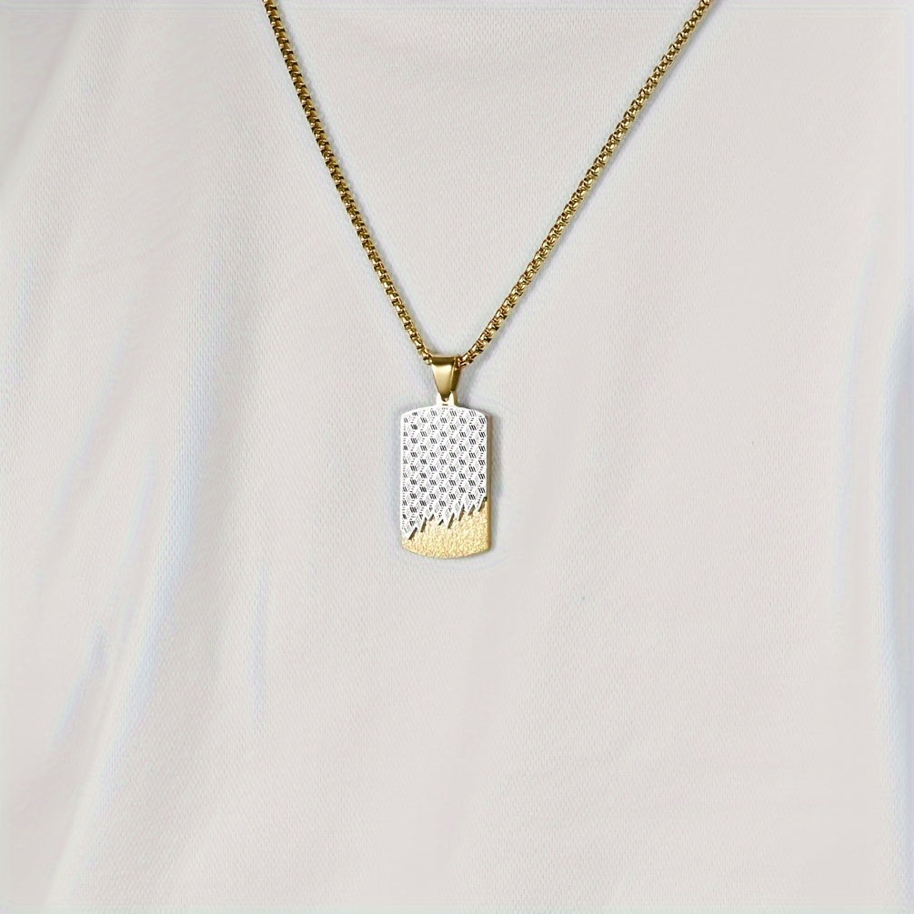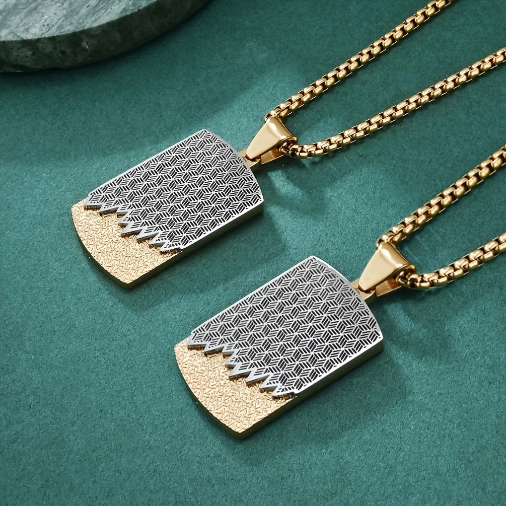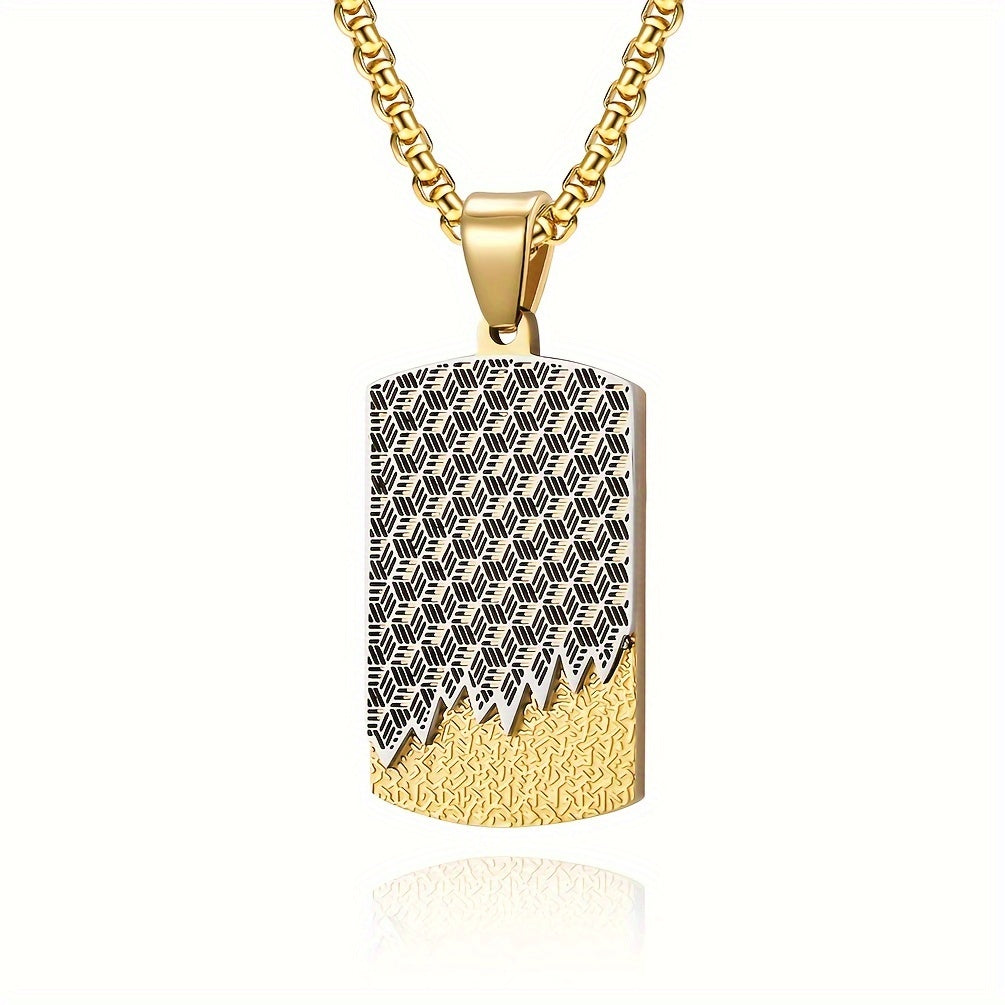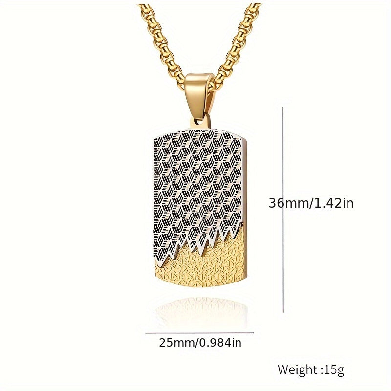 This pendant features a unique hollow two honeycomb design, crafted from 18K plated titanium steel for a durable and stylish look.