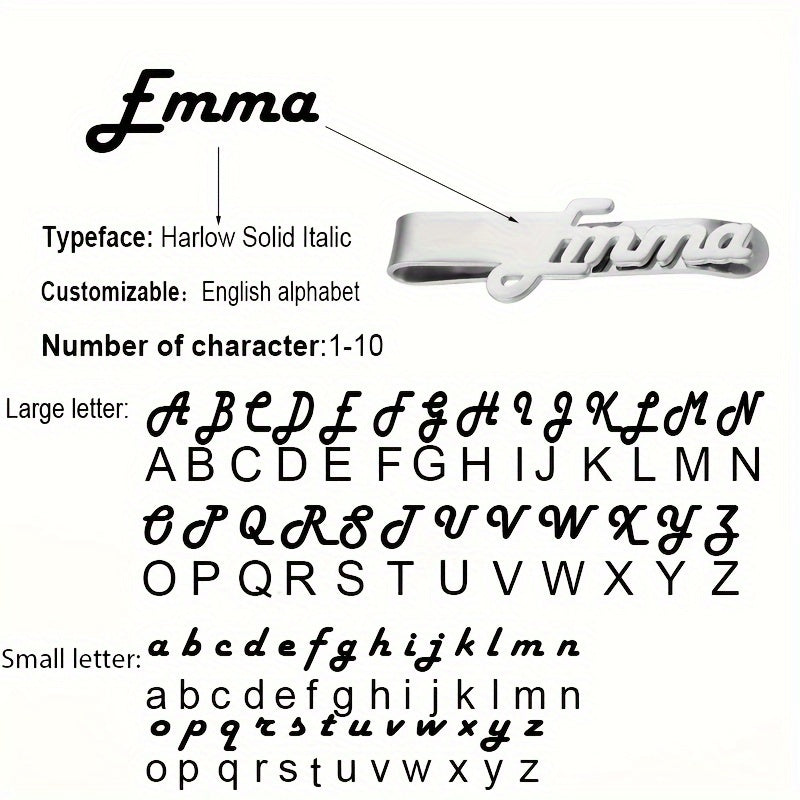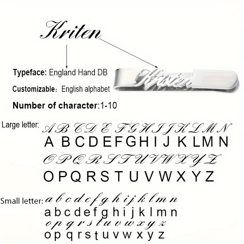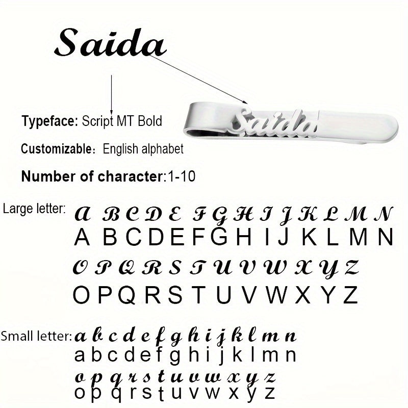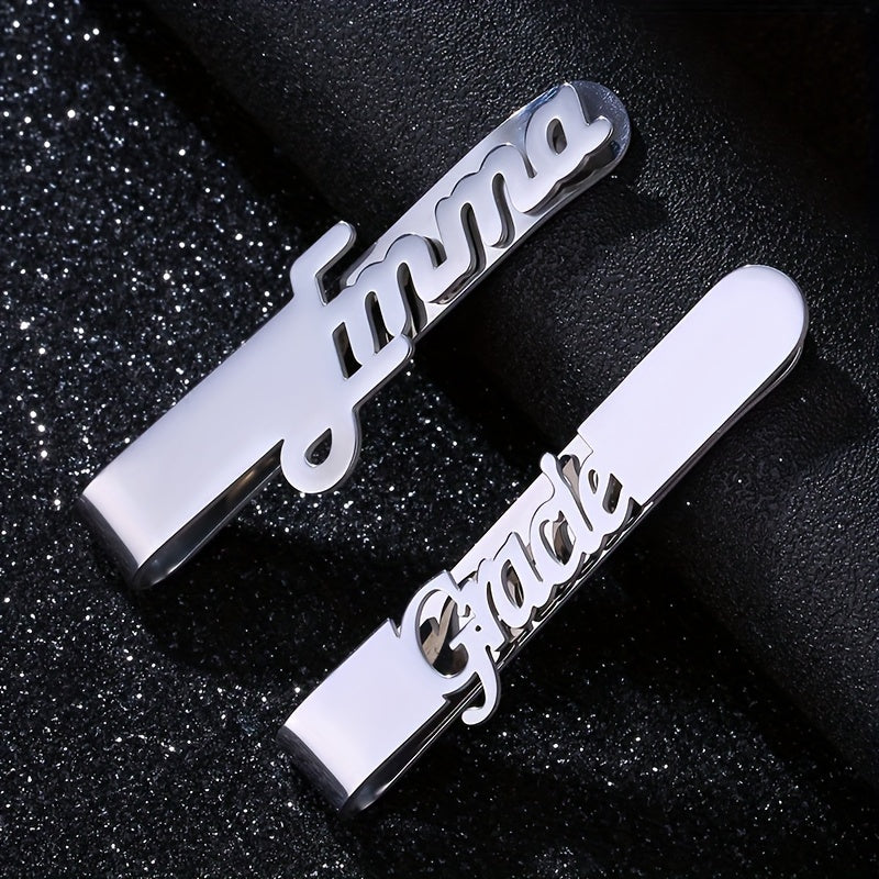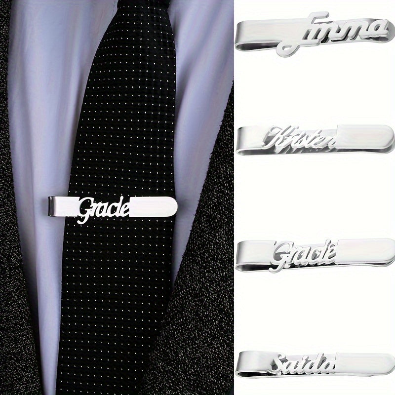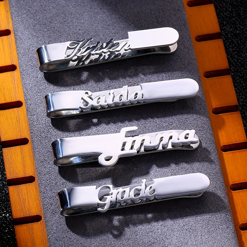 Elevate your style with this personalized name tie clip made of stainless steel. Perfect for suits, shirts, weddings, and ideal for grooms or groomsmen.