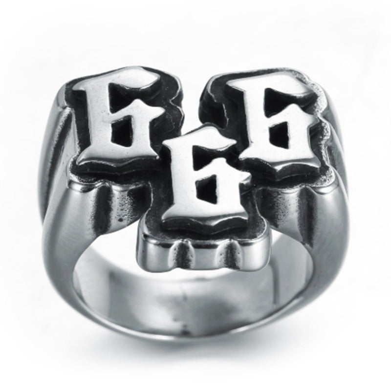 This punk style signet ring features the number 666 design, making it a bold statement accessory for men.