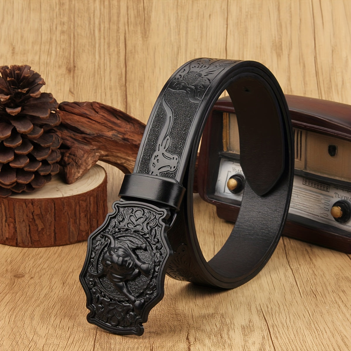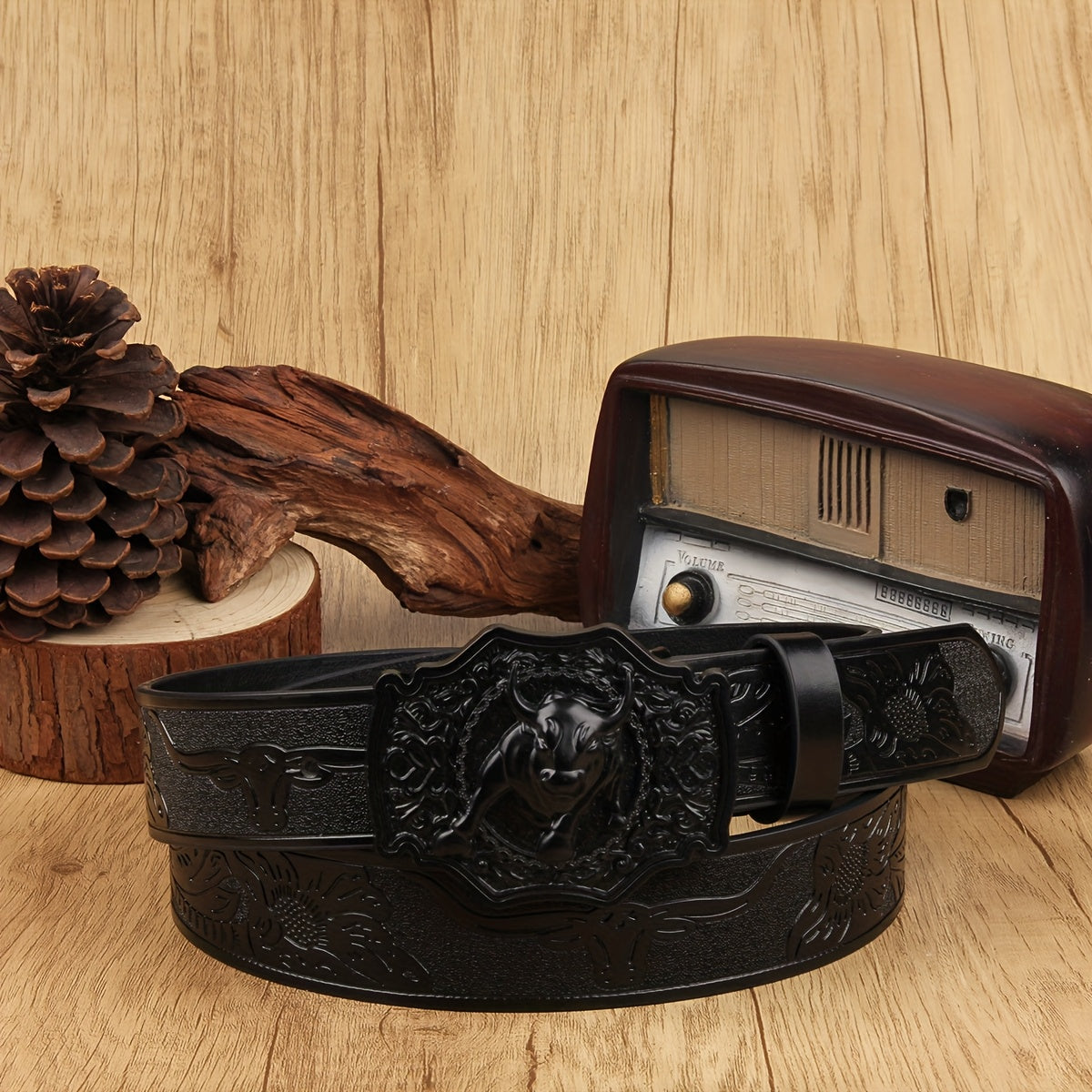 Add a touch of vintage charm to your outfit with this wide waist belt featuring a retro pattern and stylish alloy western buckle. Made of faux leather in a funky style.