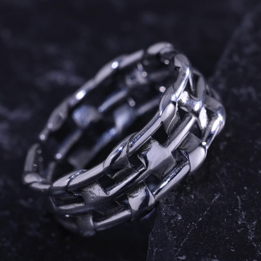 This unique ring is crafted from sterling silver and features an irregular wide woven twist design. It is perfect for both men and women with a personality punk style.