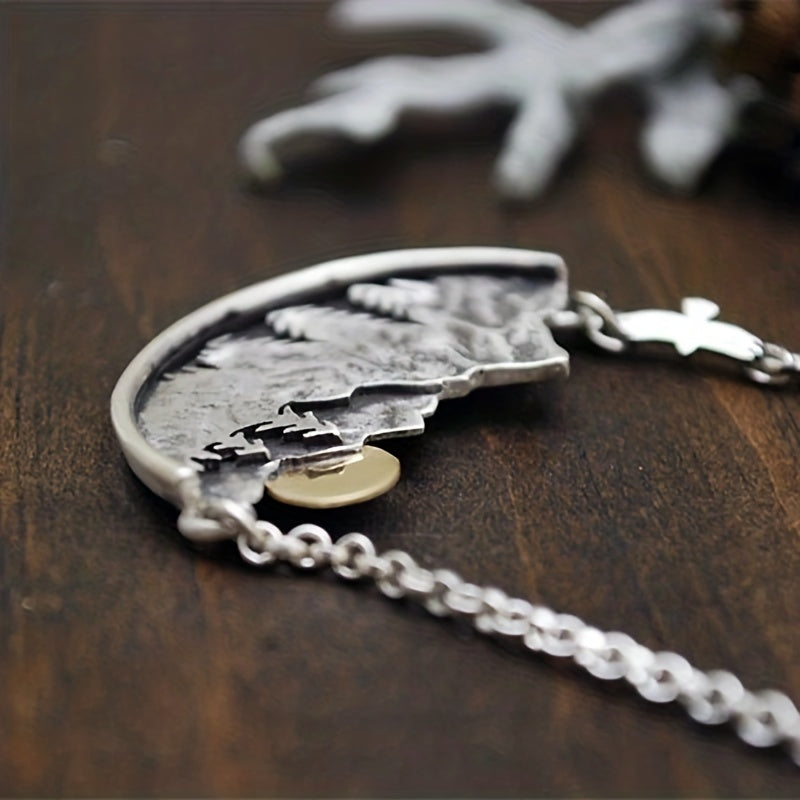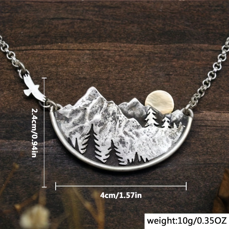 This stunning silvery pendant necklace features a boho mountain moon shape design, making it perfect for gothic parties or as a gift.