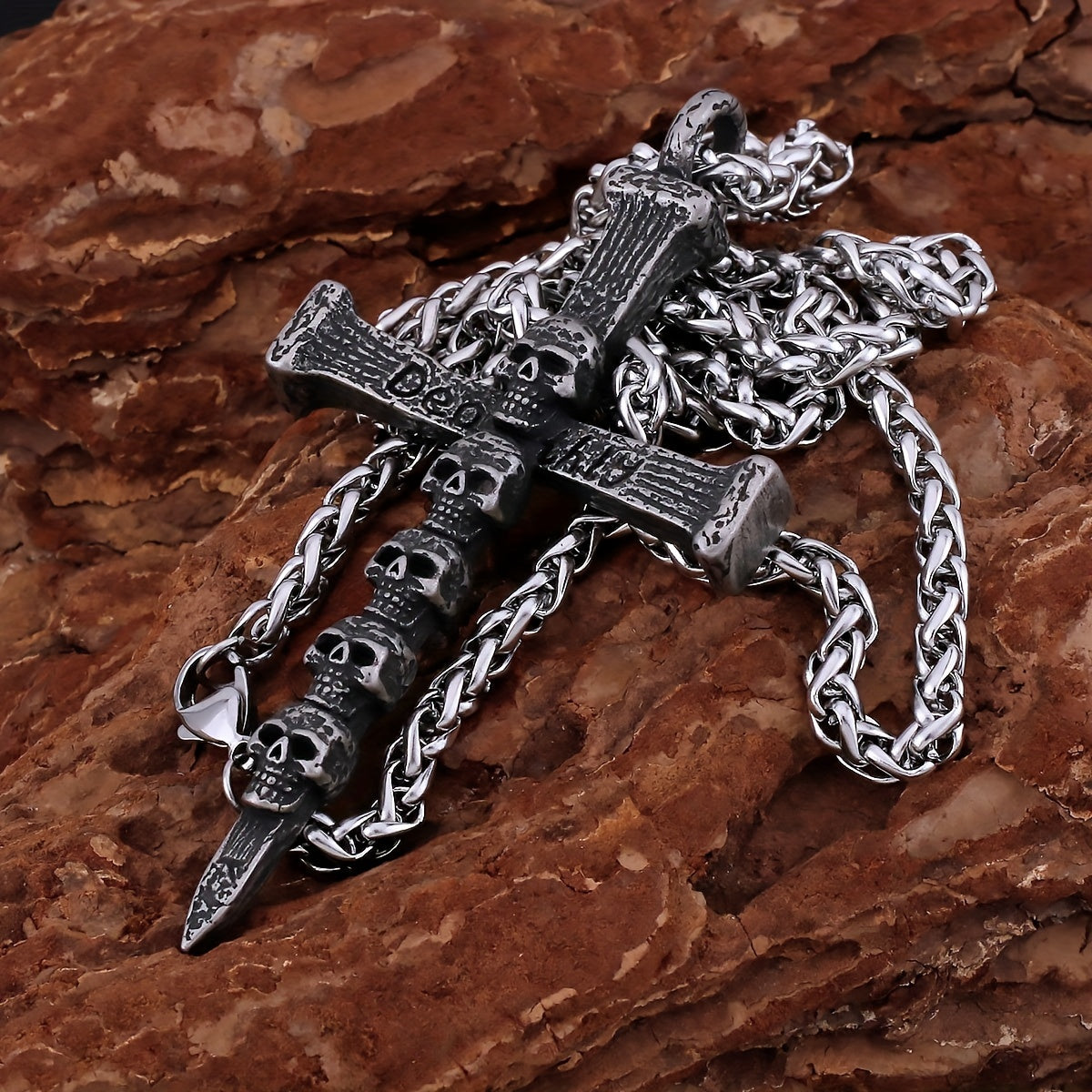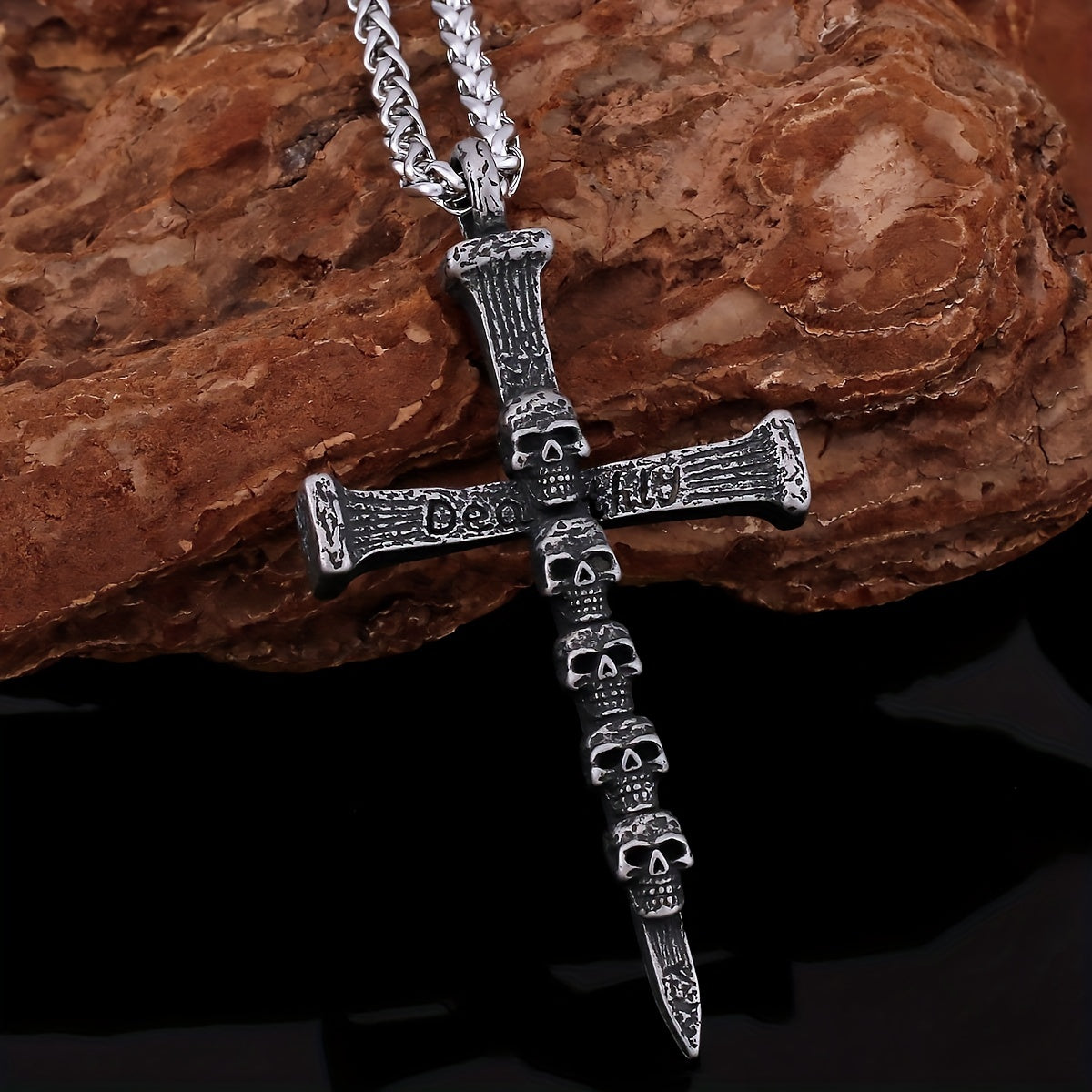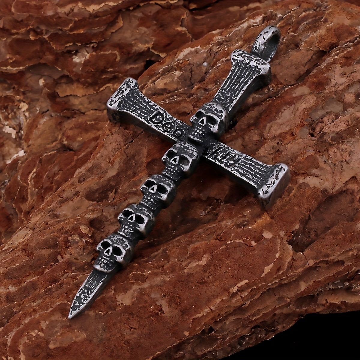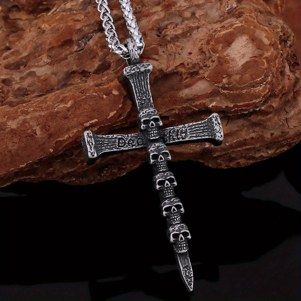 This Skeleton Head Cross pendant necklace is a unique religious amulet jewelry piece suitable for both men and women. It makes for a thoughtful gift for loved ones.