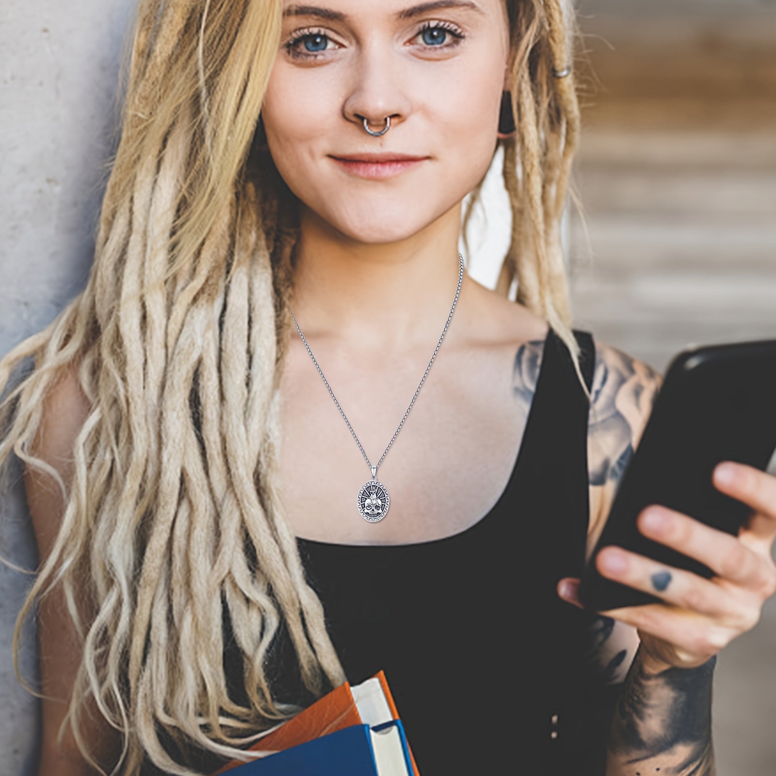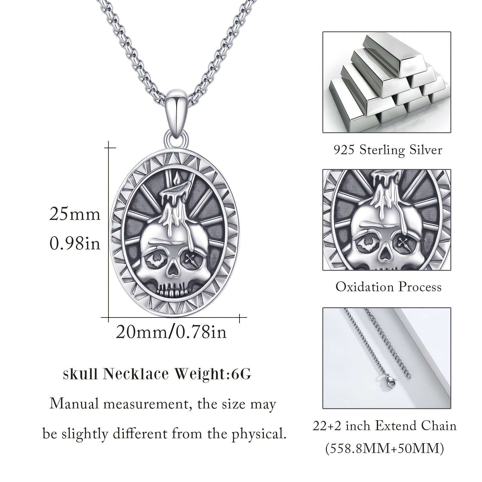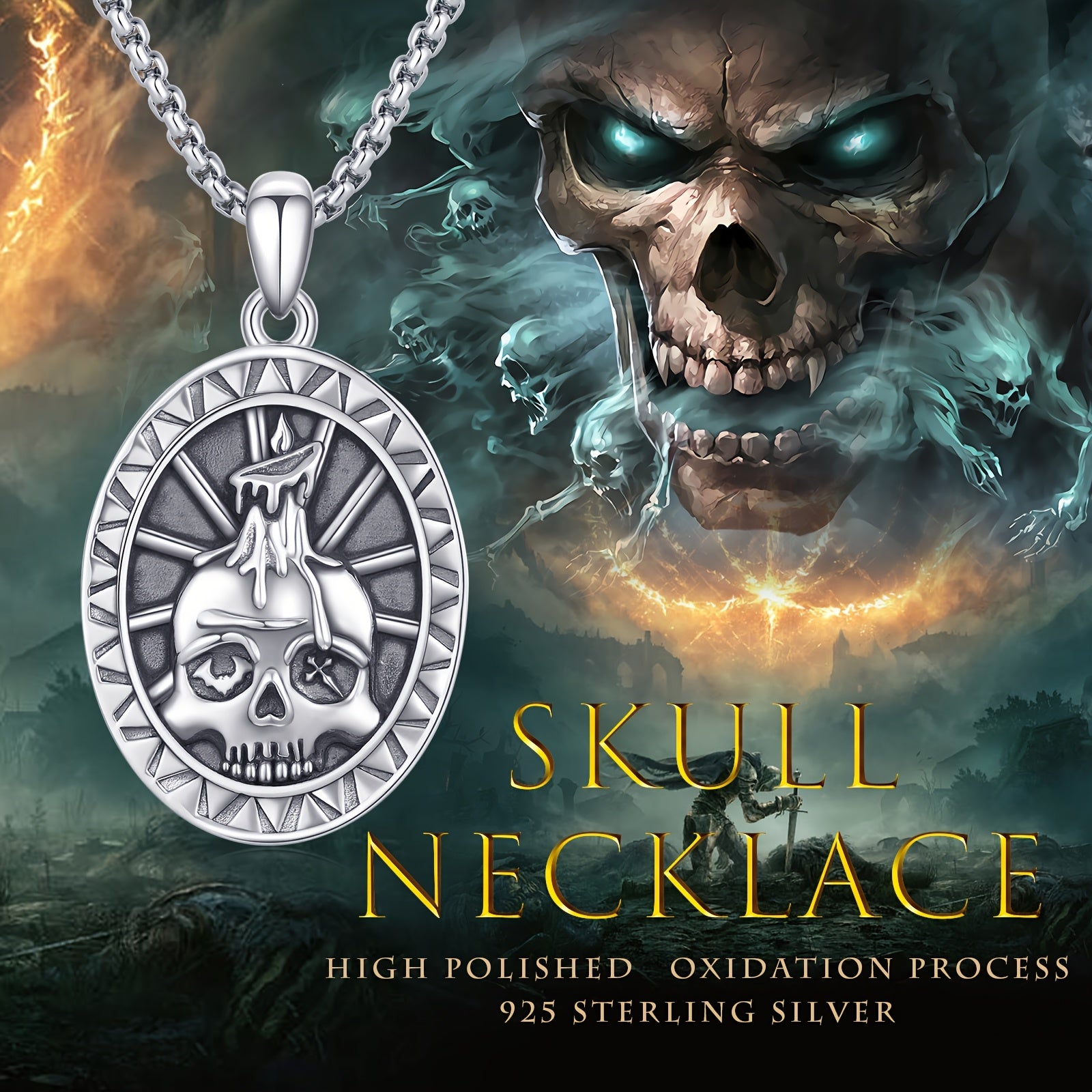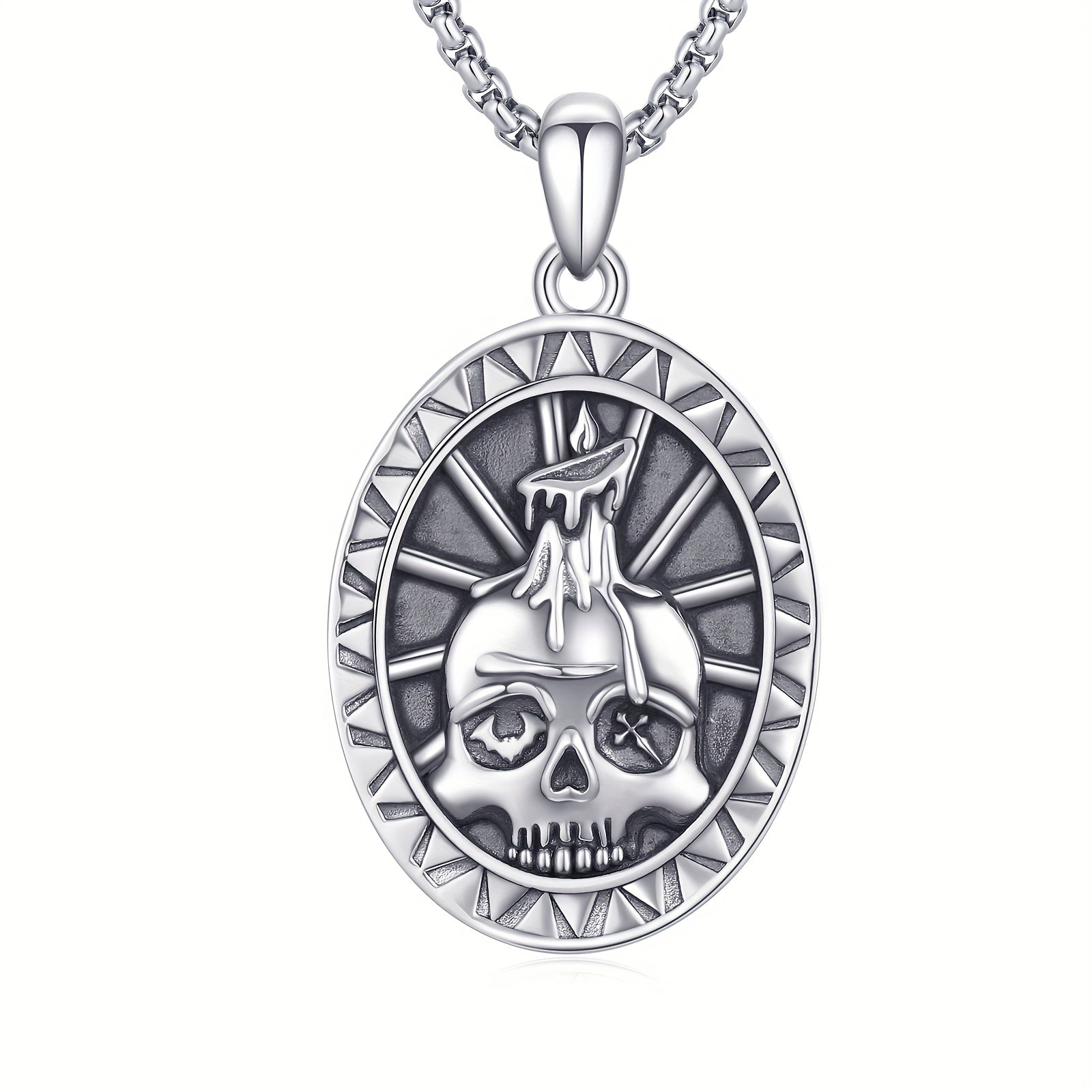 This gothic oval pendant skull necklace is made of 925 sterling silver, perfect for boys and girls. Ideal Halloween jewelry gift.