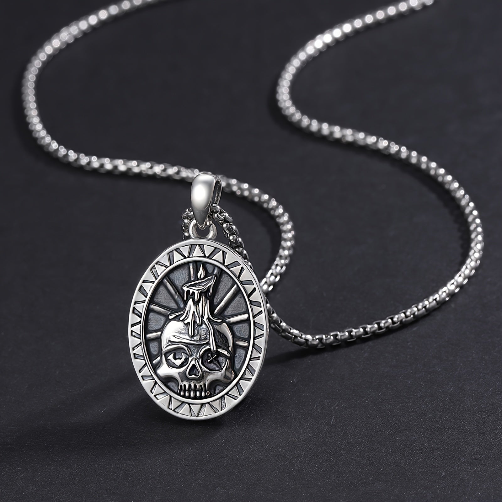 Skull Necklace Gothic Oval Pendant 925 Sterling Silver Skeleton Necklace