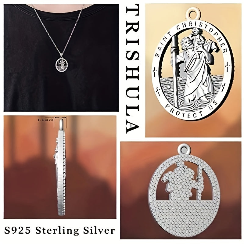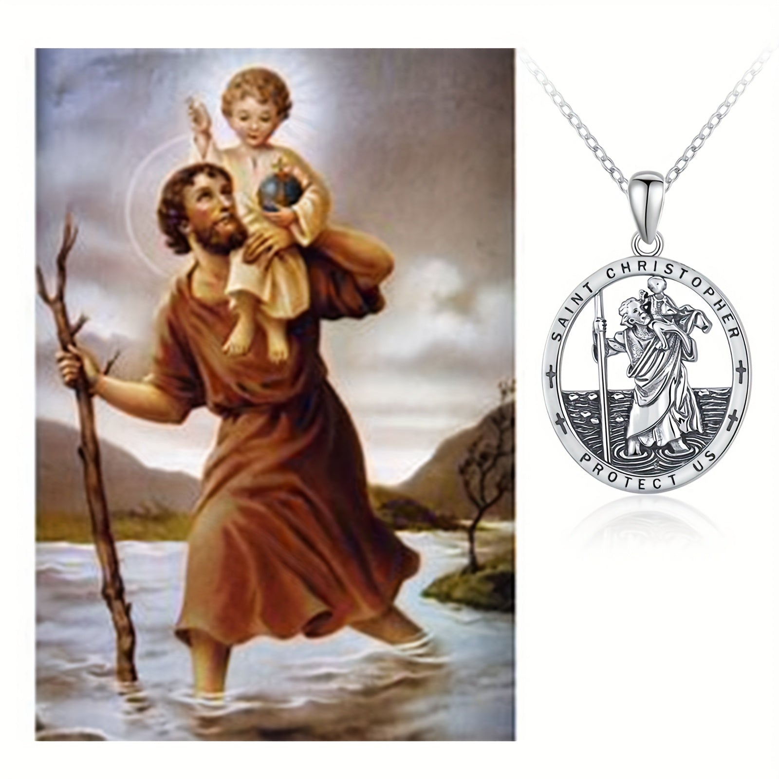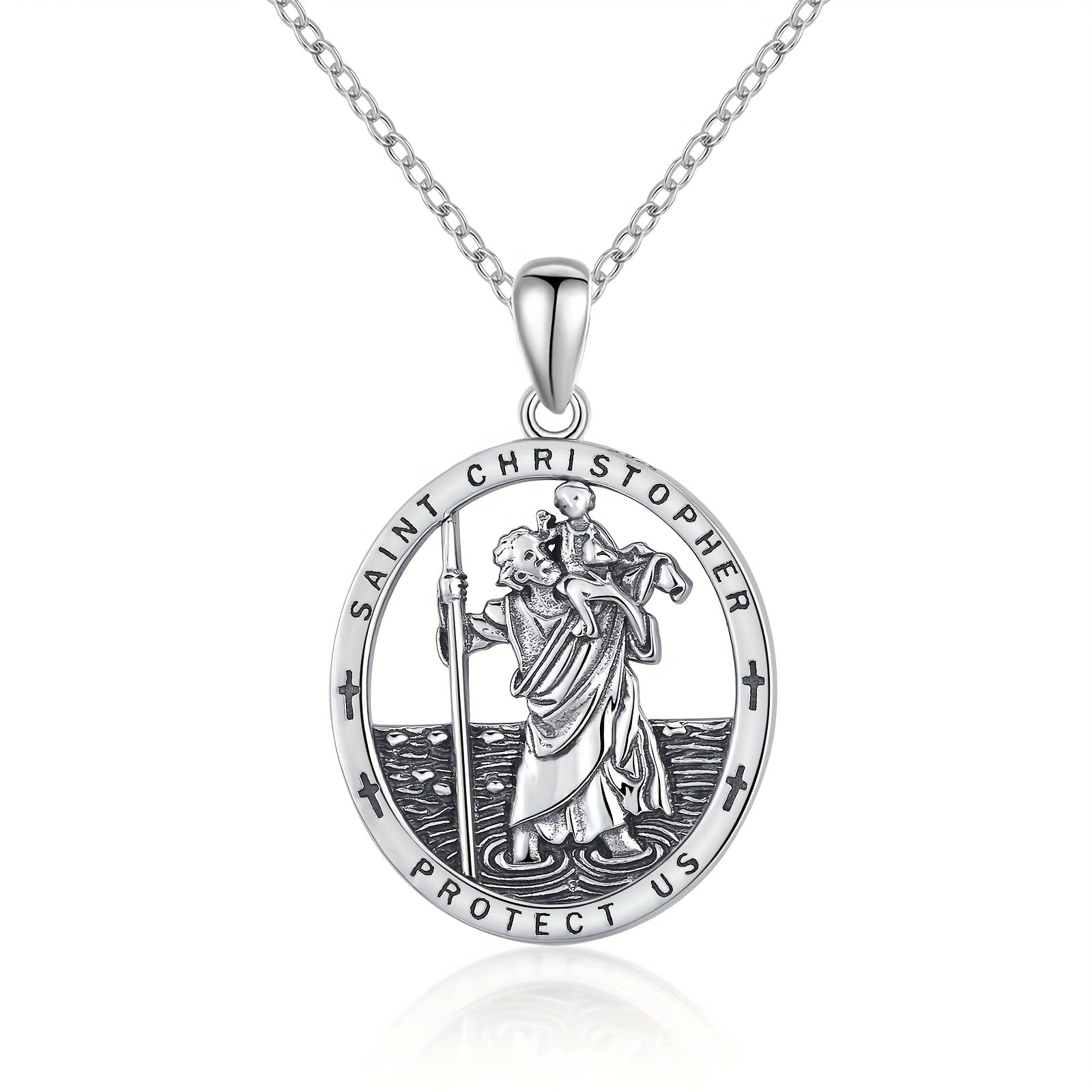 This religious pendant necklace features St. Christopher, Jesus, and Saint Michael. Made of 925 sterling silver with an antiqued finish, it's a meaningful piece of jewellery for men and women. Perfect for graduation gifts.