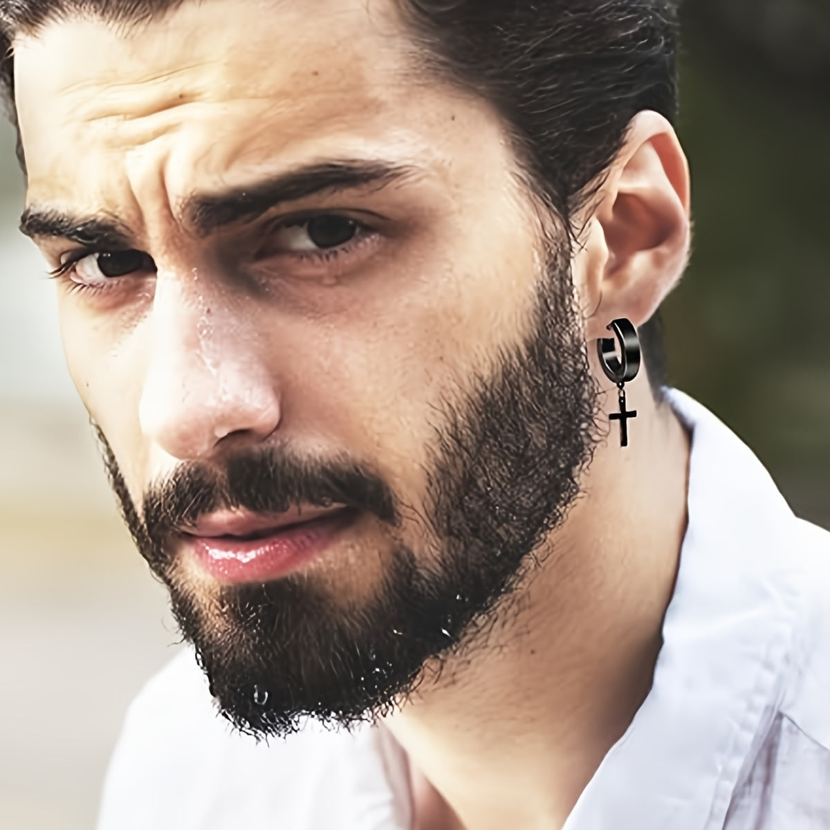This set includes 15 pairs of stainless steel earrings suitable for both men and women. The set features cubic zirconia studs, cross dangles, and huggie hoops in silver and gold tones.