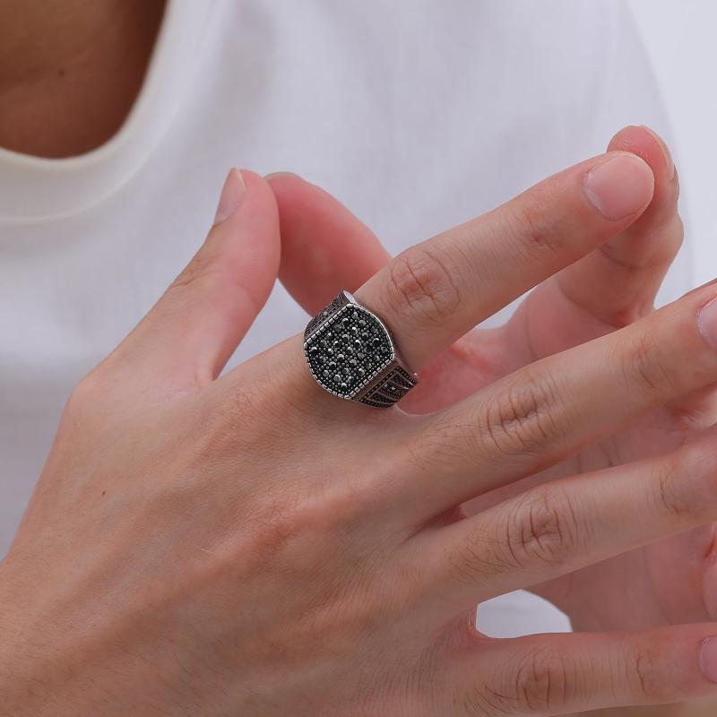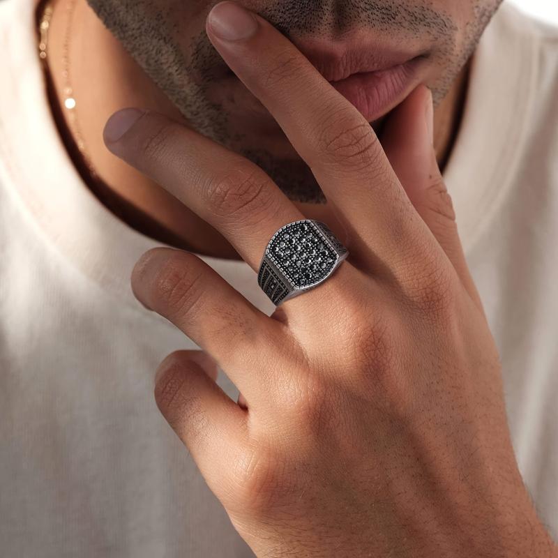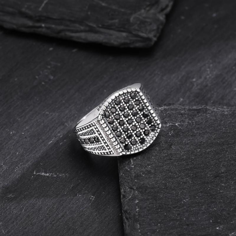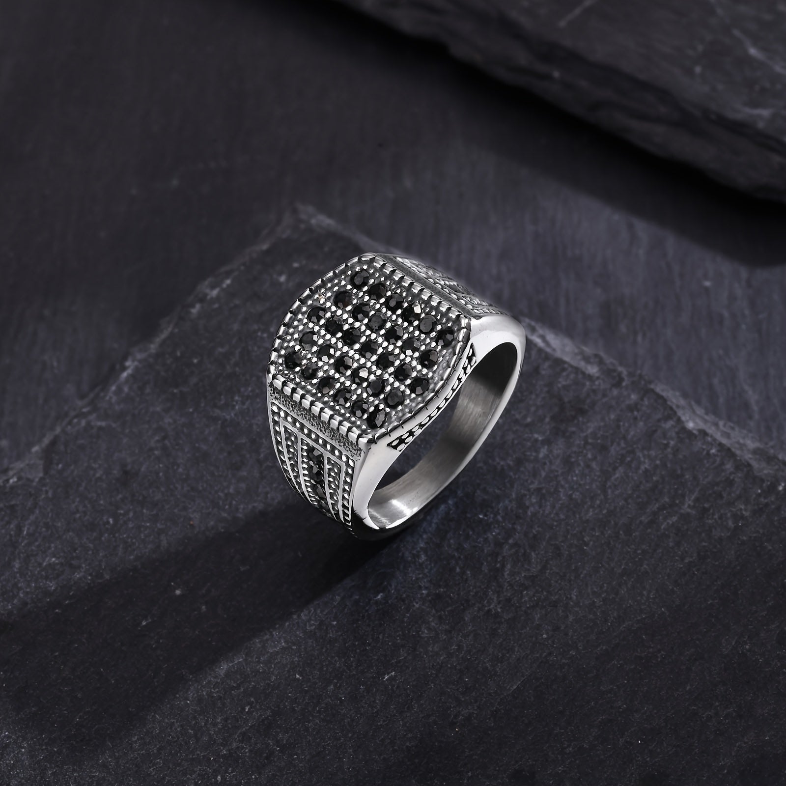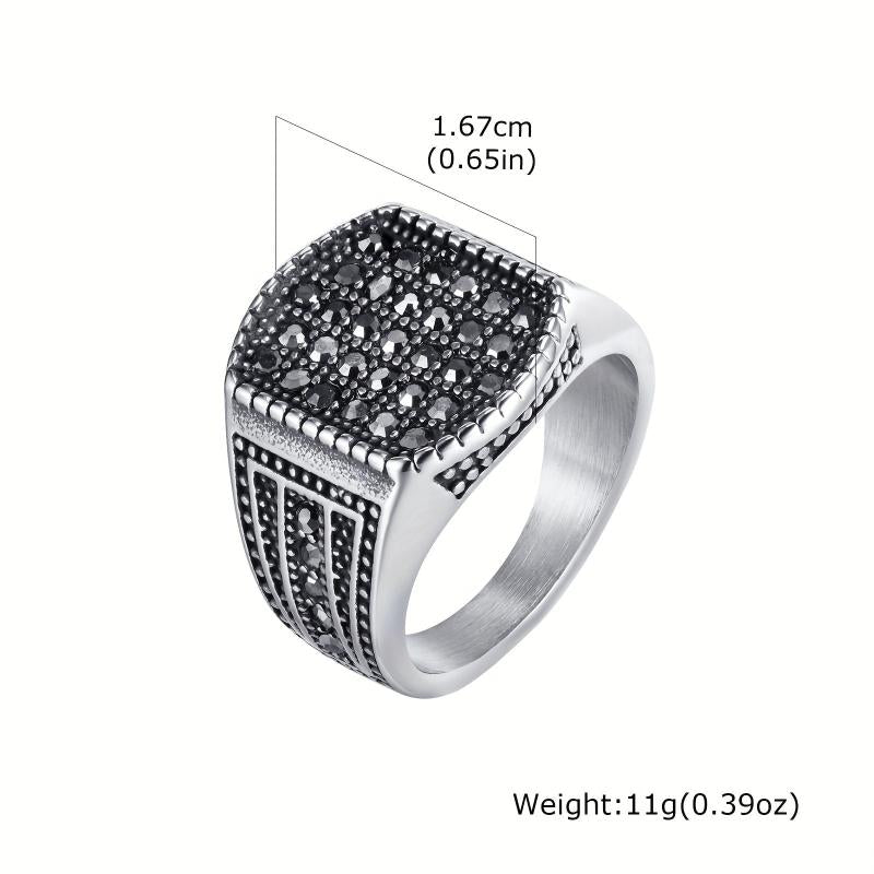 This stainless steel men's ring features gothic design with zirconia stone, perfect for hip hop style. Ideal Christmas gift for a fashionable man.