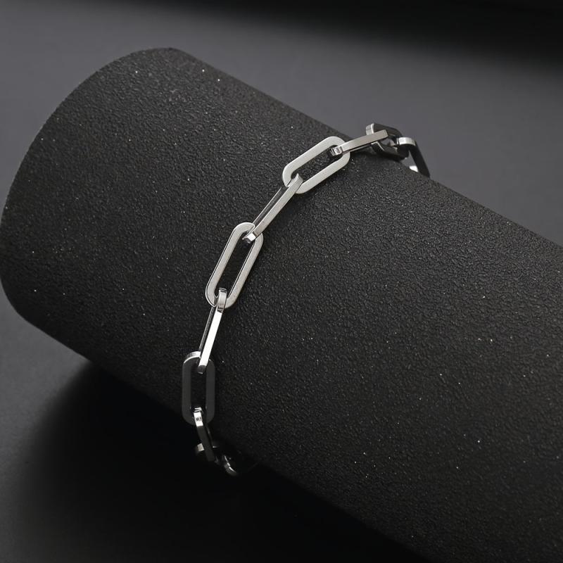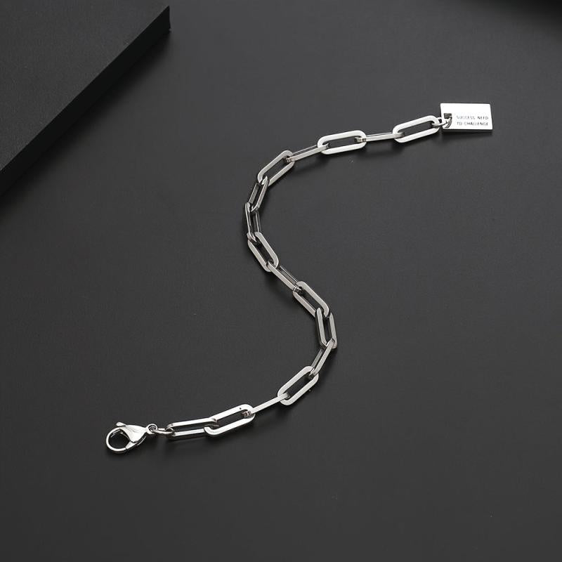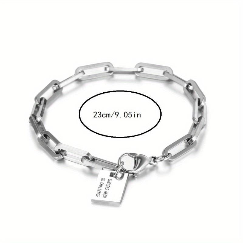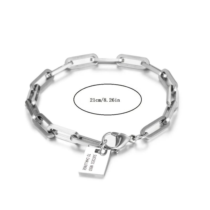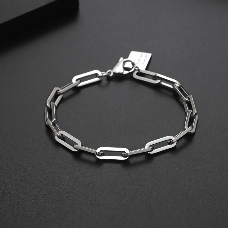 This stainless steel bracelet features a characteristic hip hop design with a thick link chain. It adds a bold and stylish statement to your outfit.