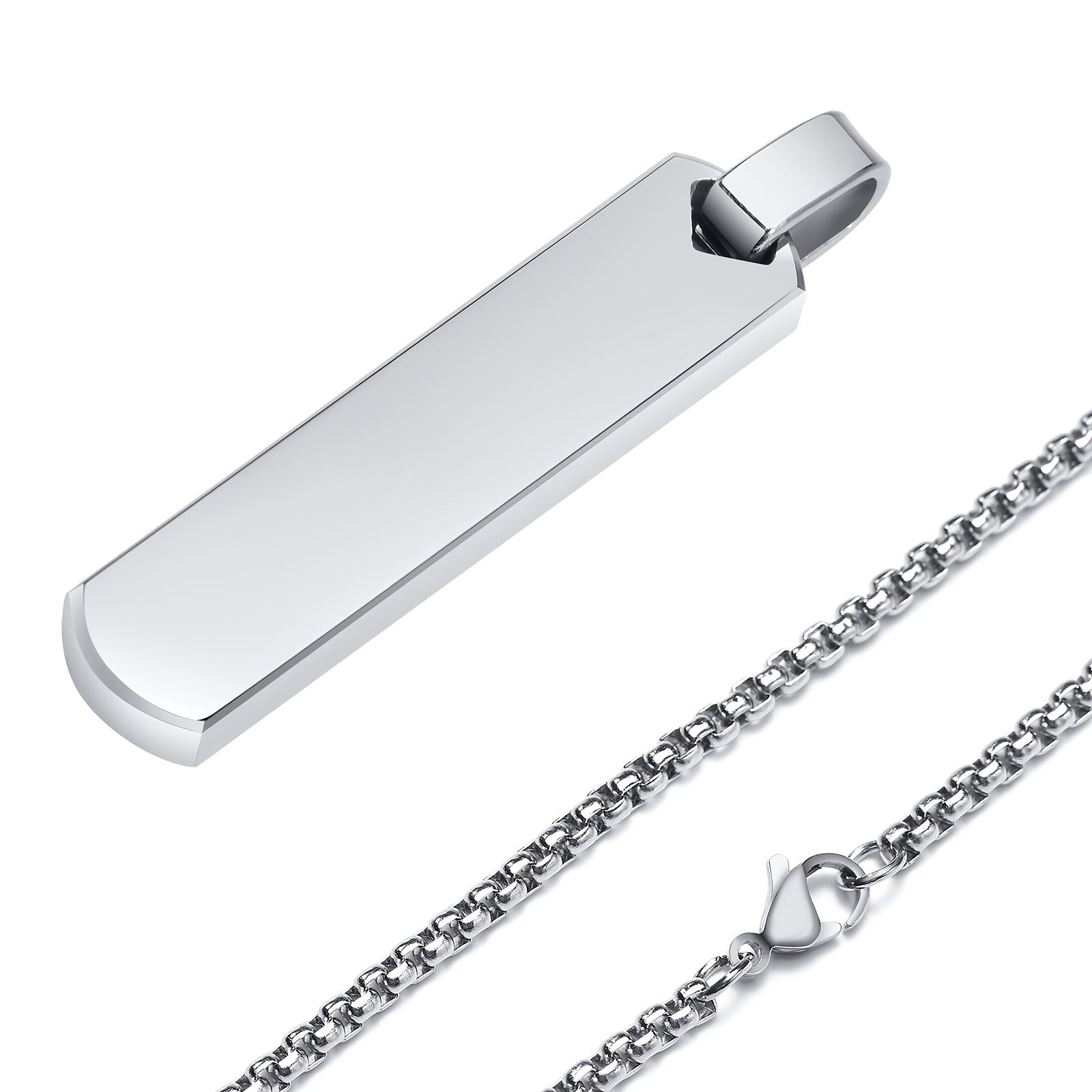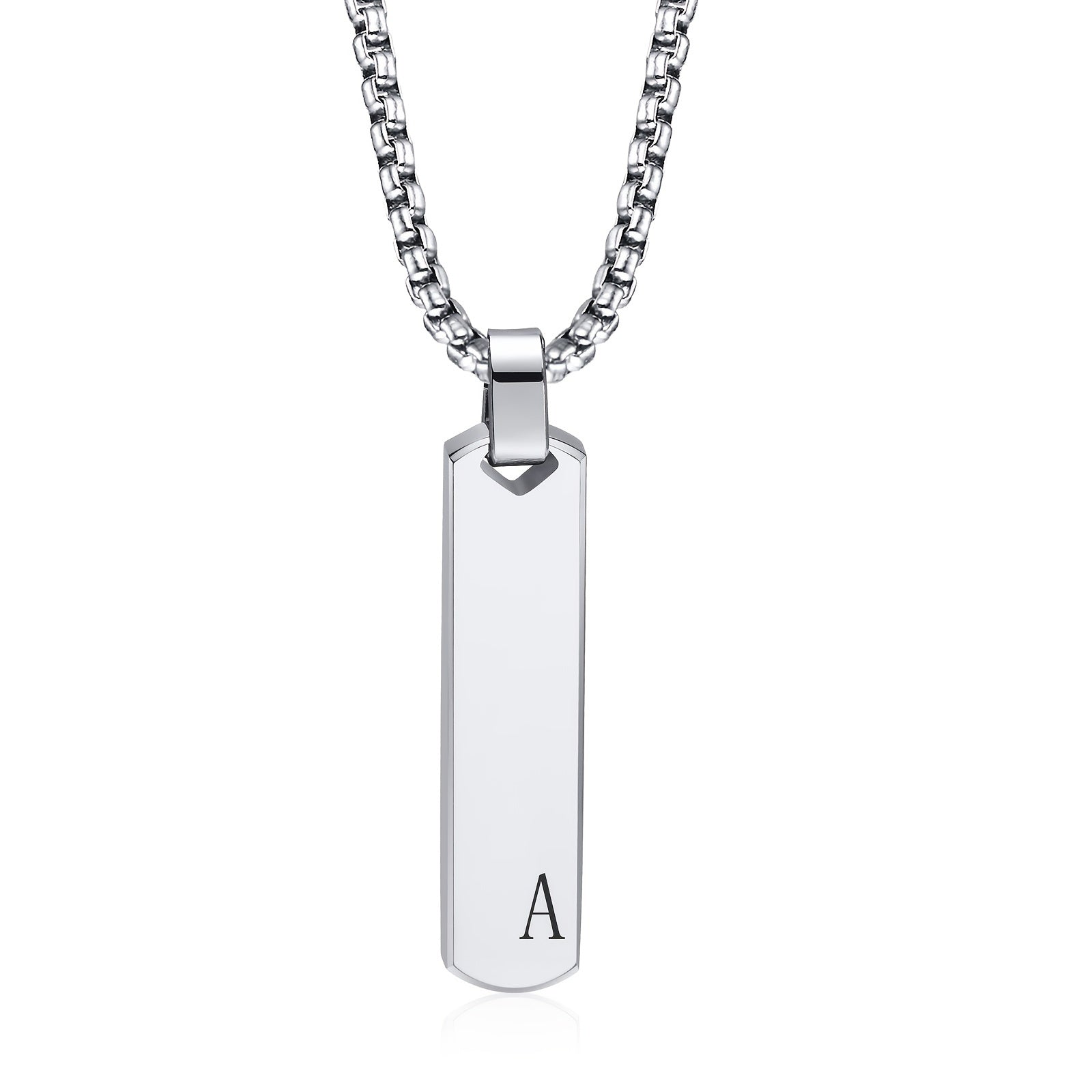 This necklace pendant is crafted from stainless steel and features a laser-etched 3D design of the 26 letters. The polished finish adds a stylish touch to any outfit.