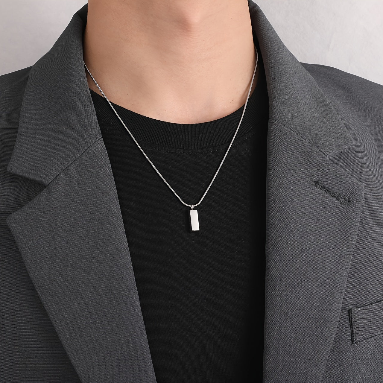Stainless Steel Snake Bone Necklace Hypoallergenic Square Pendant