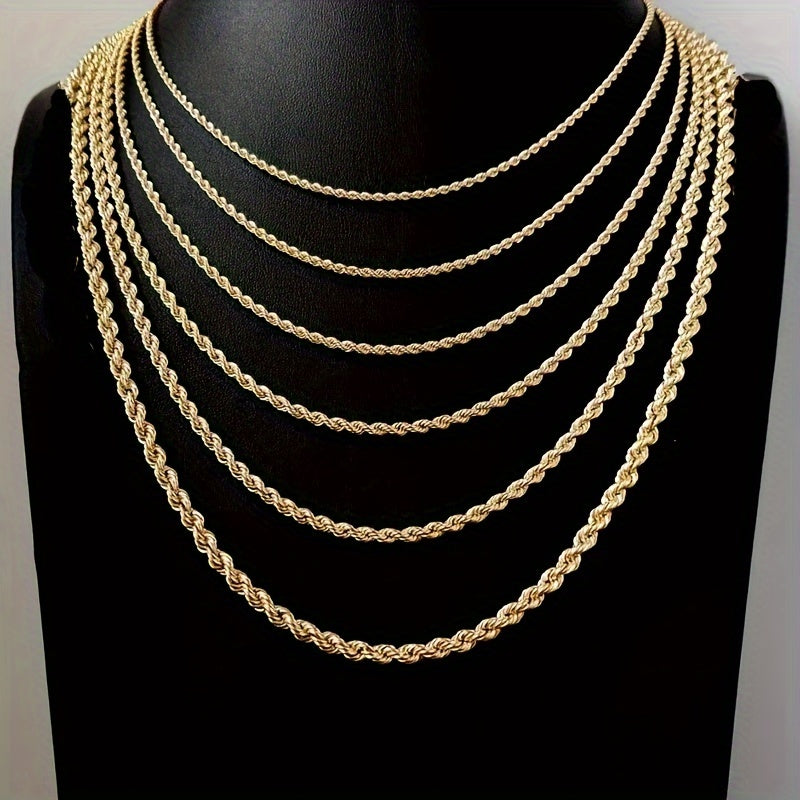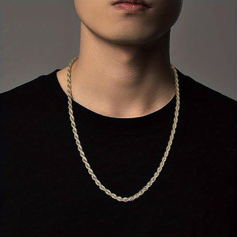 This stylish stainless steel rope chain necklace is perfect for men and women. It features a twisted design and is available in 18 to 24 inches. The chain is durable and non-fading.
