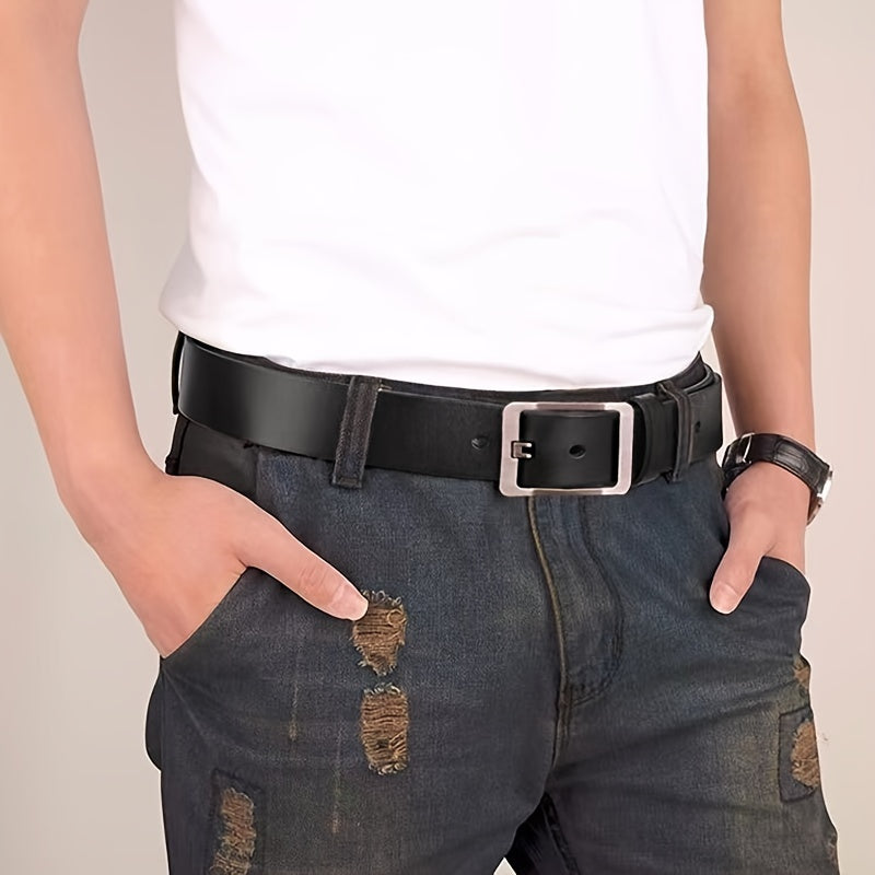 This high-quality leather belt with a needle buckle is perfect for young individuals who seek a trendy and fashionable style. It complements both business attire and casual pants seamlessly.