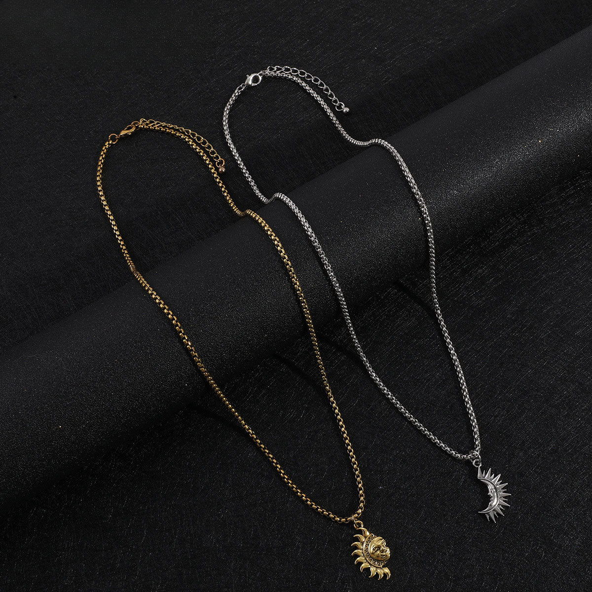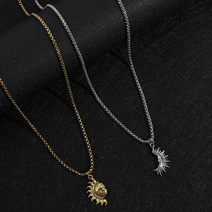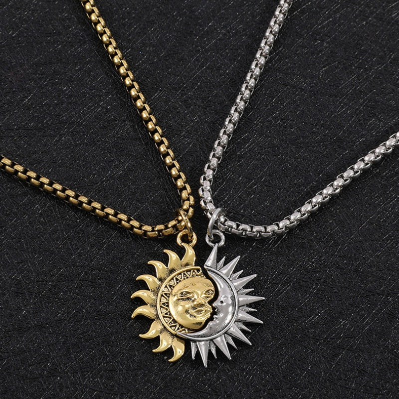 These titanium steel necklaces feature sun and moon pendants, ideal for men and women. Great for parties, festivals, dates, or casual wear.