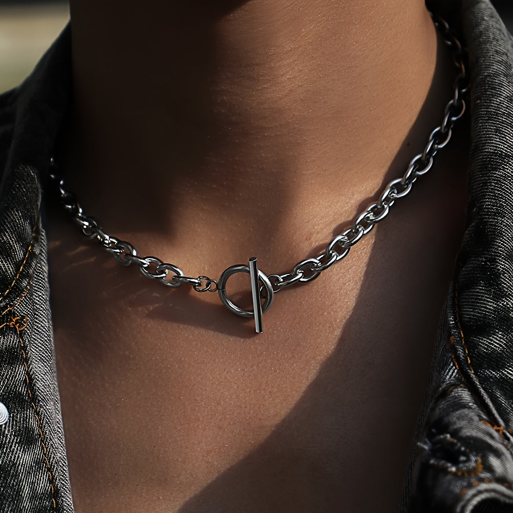 This thick chain necklace is suitable for both men and women. It features an OT buckle lock and a stylish bone chain design.