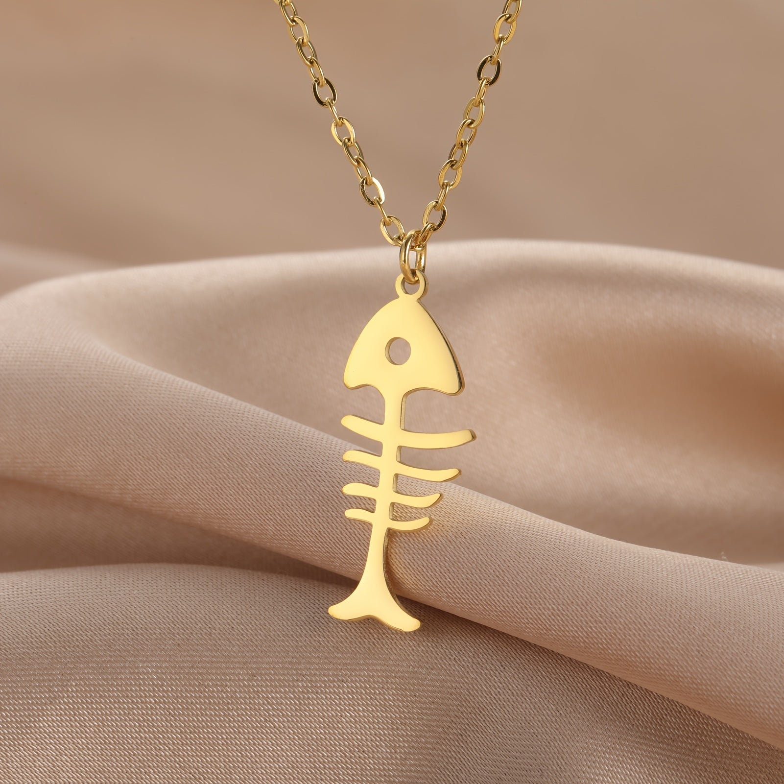 This bohemian style mini fish pendant necklace features a stainless steel bead chain, making it a perfect gift for any occasion.