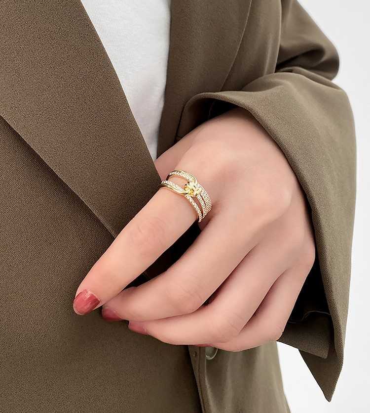 A knot that symbolizes your commitment and has you bound for life! Gift her this stunning open layered ring that is accented with rows of perfectly set cubic zirconias with a symbolic Lifelong knot at the center. Pledge your love with this spectacular ensemble.