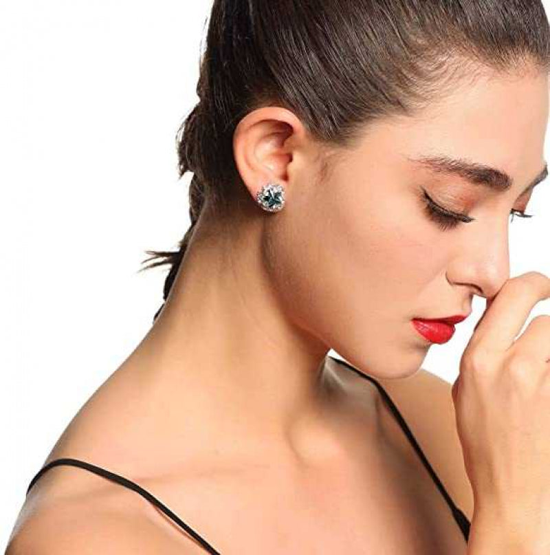 Women's Silver plated Star shaped Stud Earring With Paved Zirconia