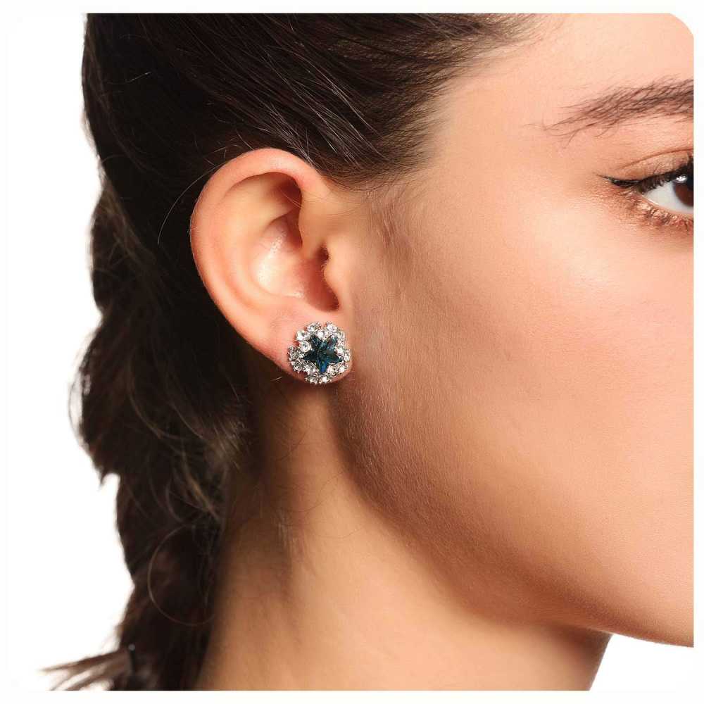 - Silver plated stud earring paved with cubic zirconia