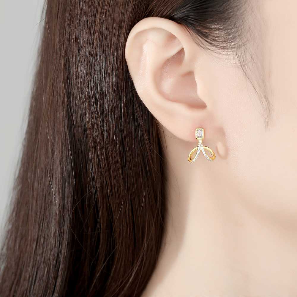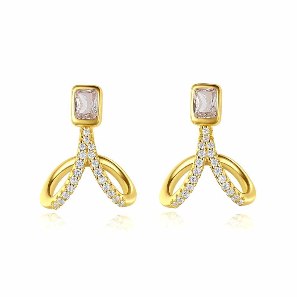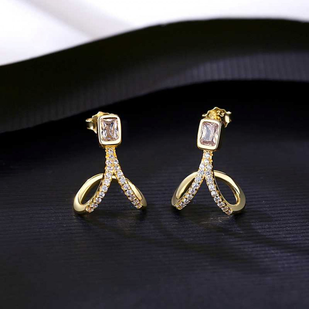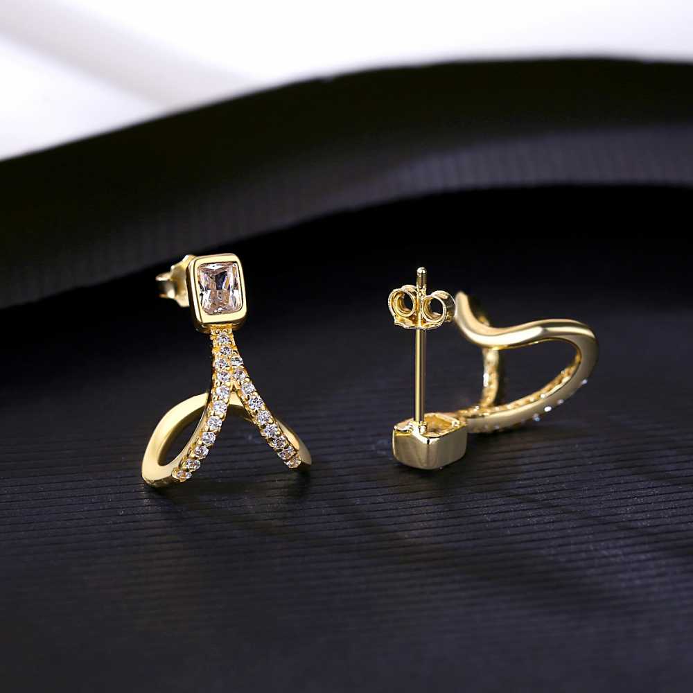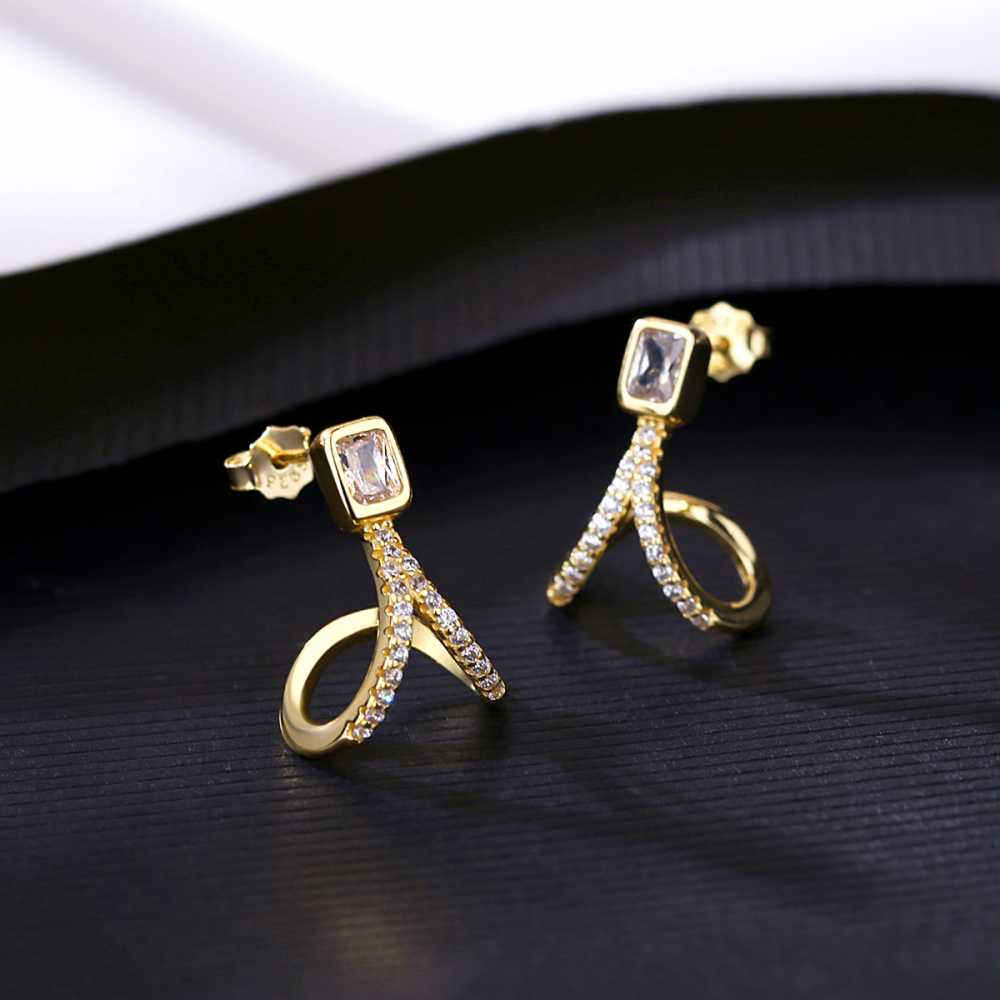 Simple yet stunning, this stud earring with an angular bend is a match made in heaven for those looking to add a little bit of edginess to their style. Studded with cubic zirconia baguette stud top, this pierce post style earrings butterfly screw back findings. Wear this earring and rock on as it captures the light and sparkle on your earlobes.