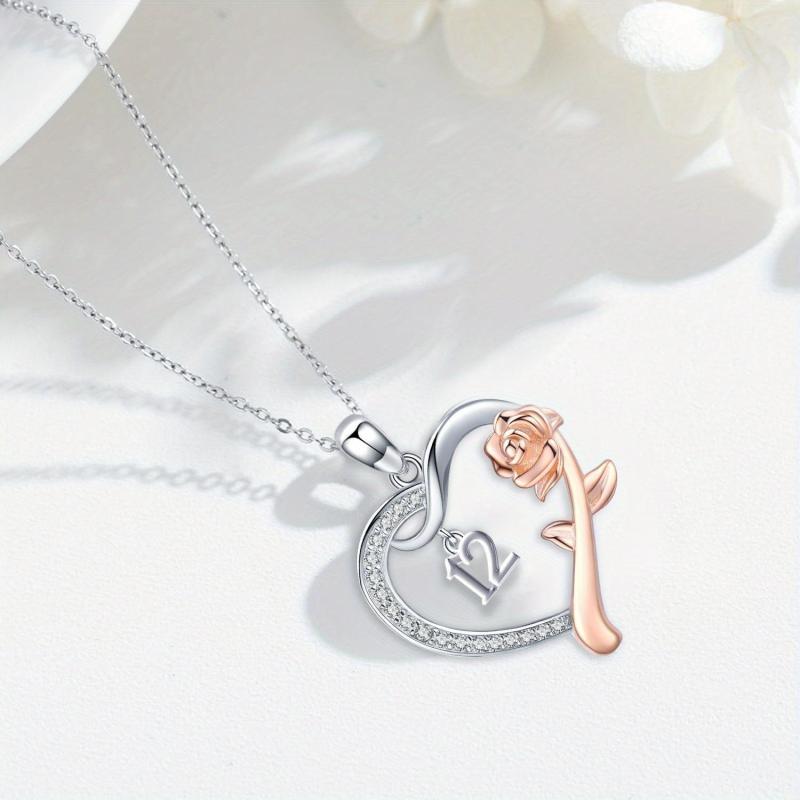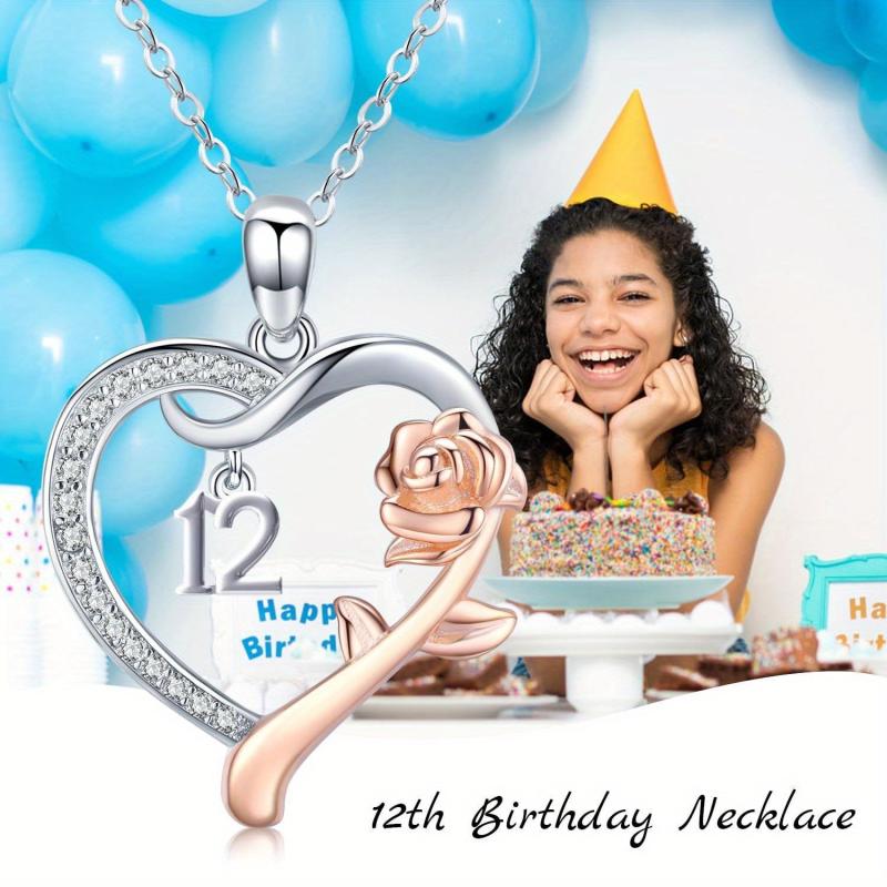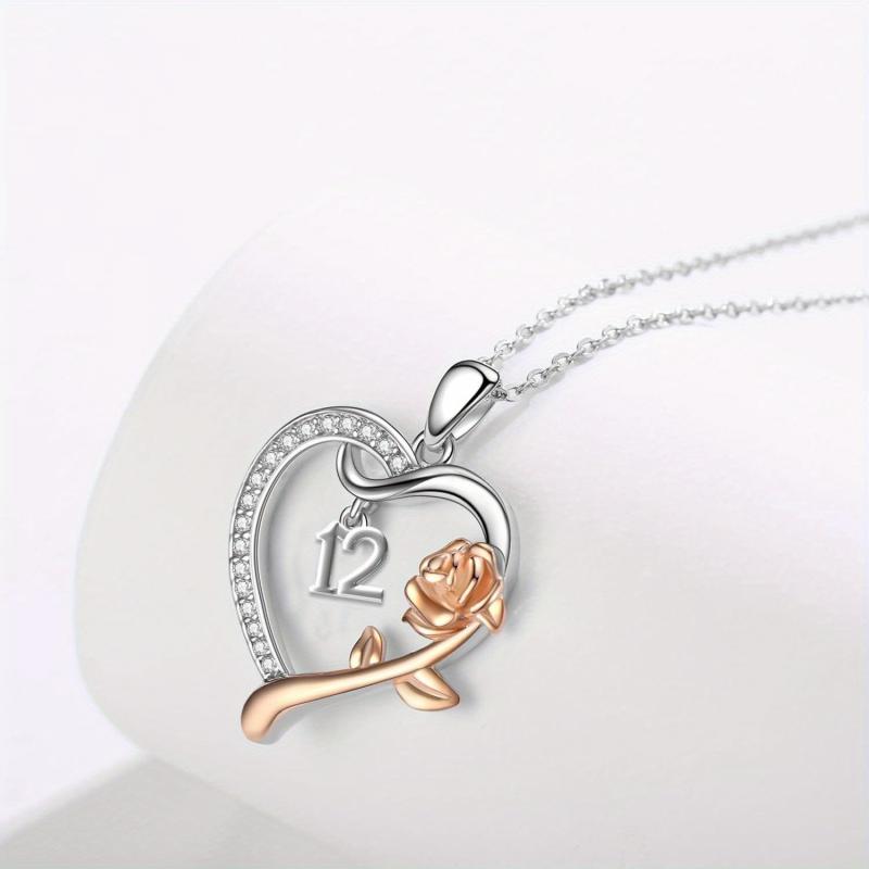 Celebrate your 12th birthday with this beautiful necklace featuring a roseflower heart design crafted in 925 sterling silver. Perfect for a special gift or personal accessory.