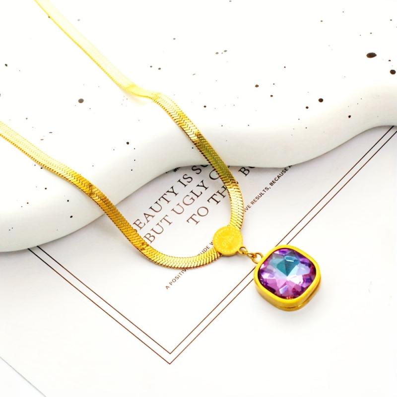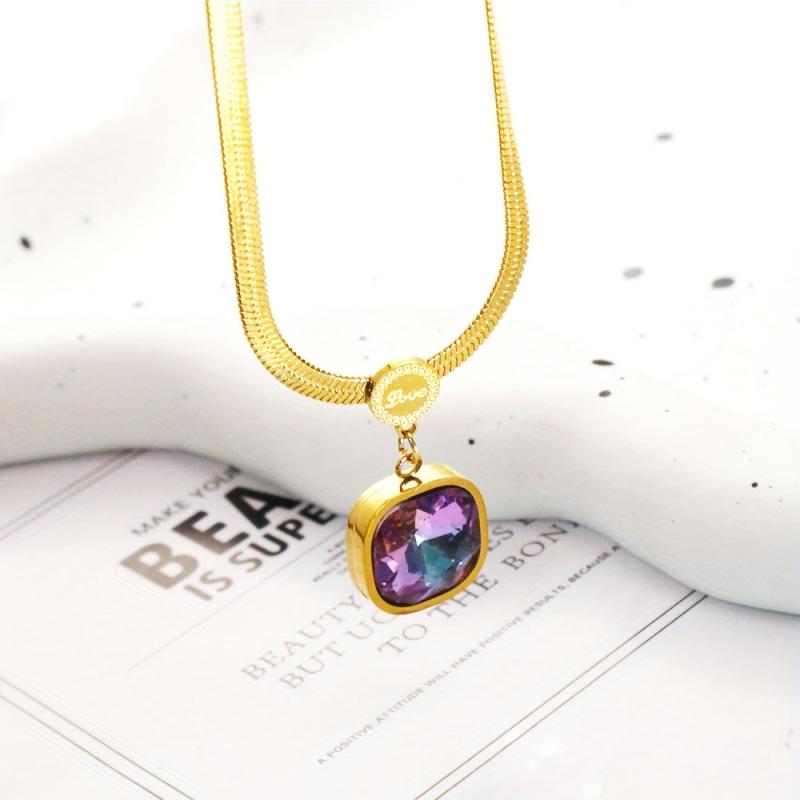 Elegant and stylish pendant necklace featuring synthetic zirconia mosaic for a luxurious look. Perfect for daily wear or as a Valentine's gift.
