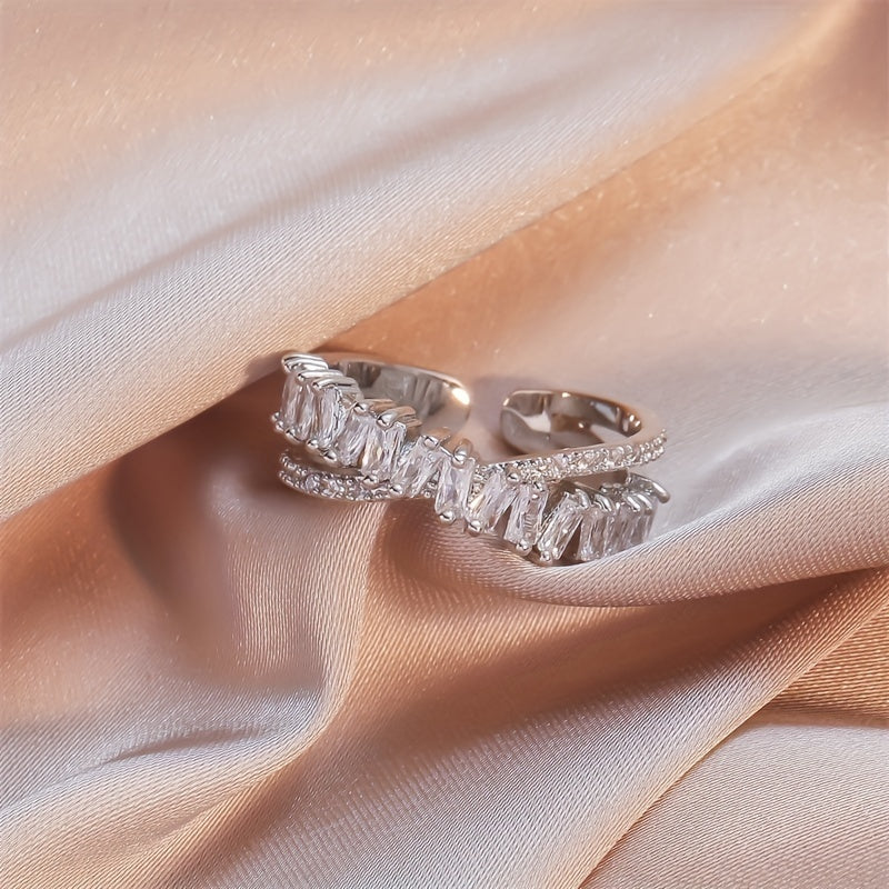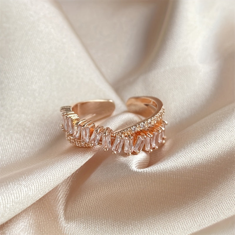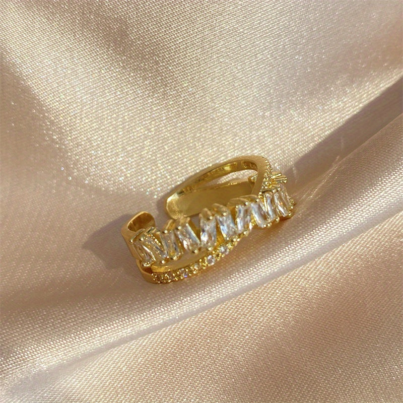 Add a touch of elegance to your look with this dainty ring featuring rectangular AAA zircon inlays. Perfect for parties or everyday wear, this 18k plated jewelry makes a thoughtful birthday gift for your loved one.