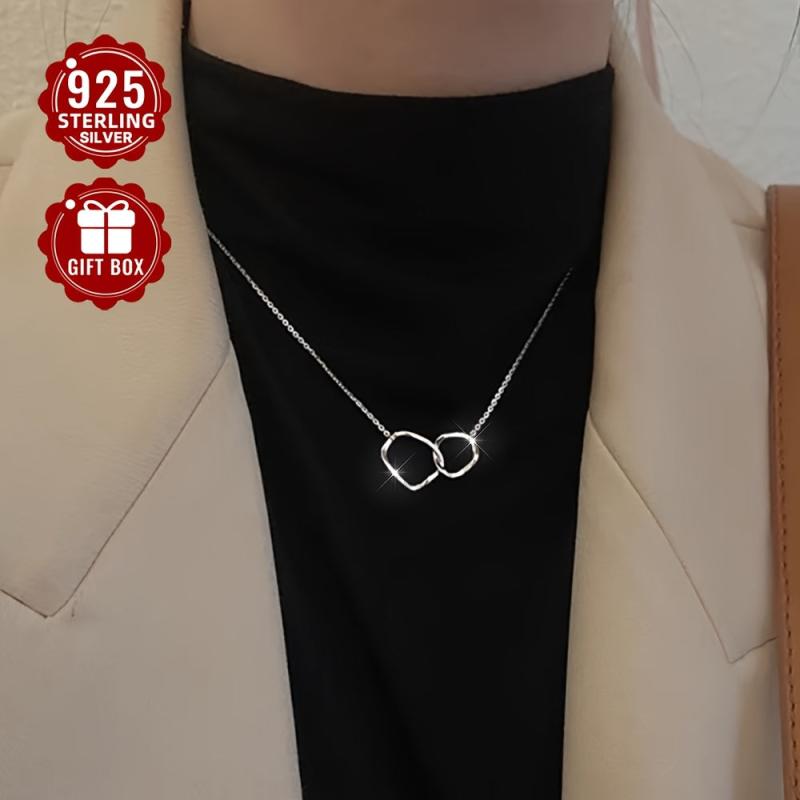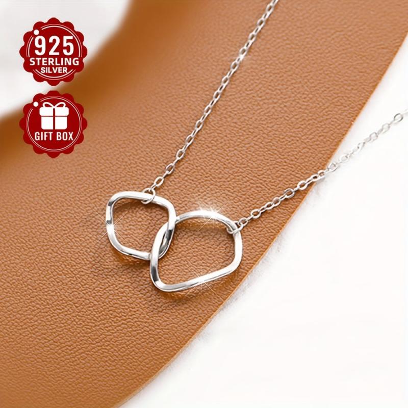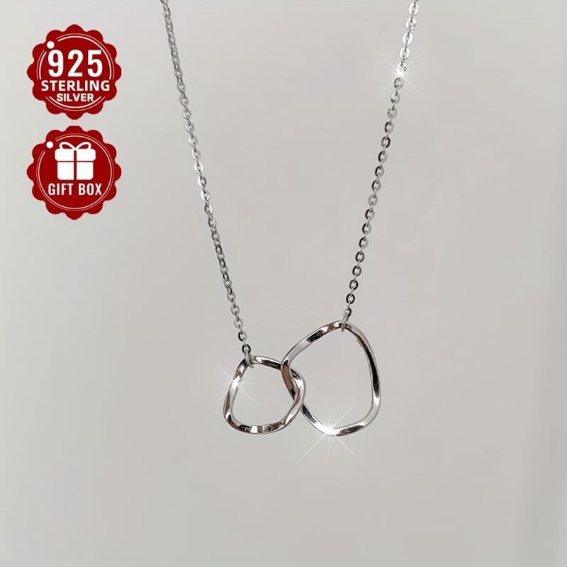 2g 1pc S925 Sterling Silver Double Circle Interlocking Necklace