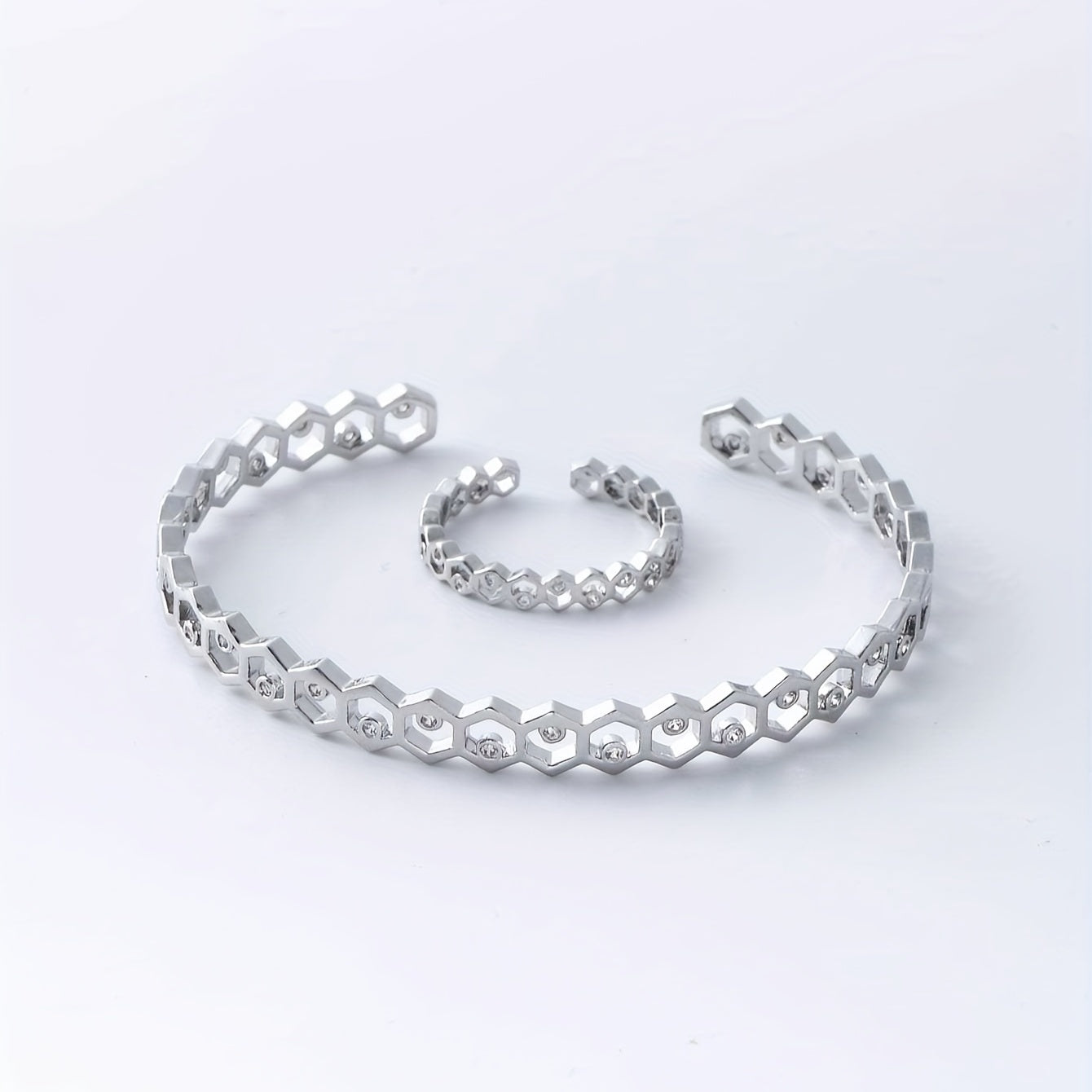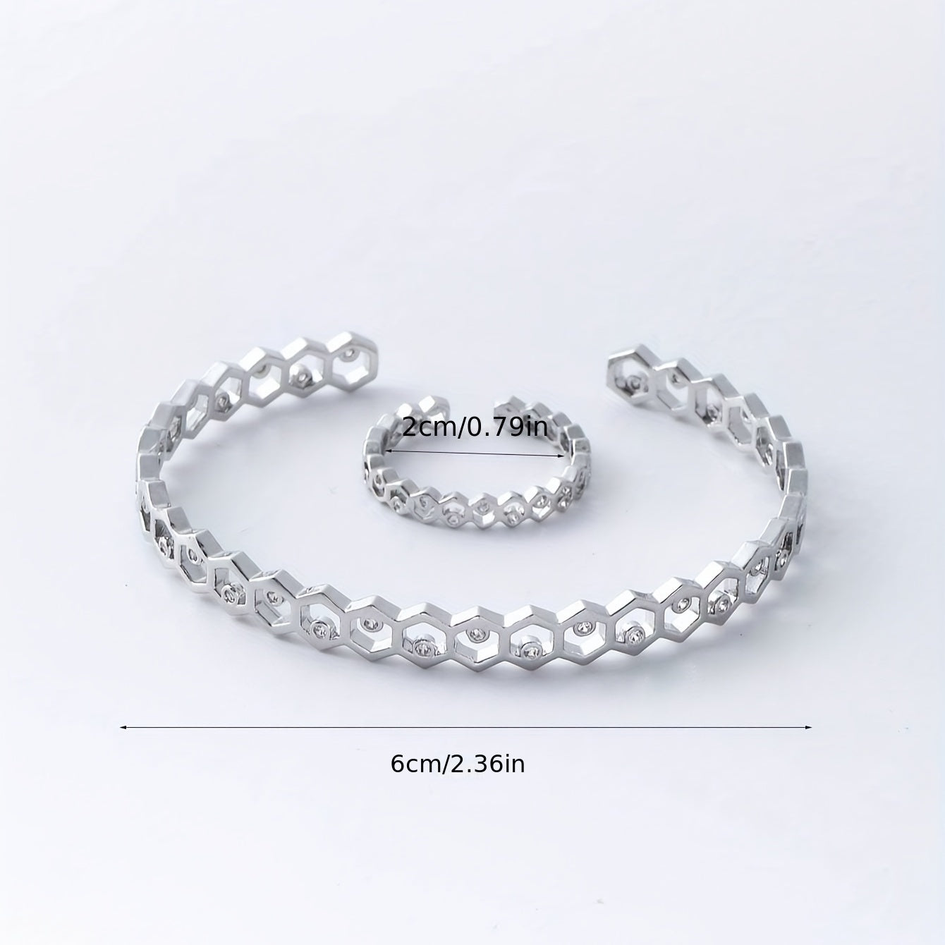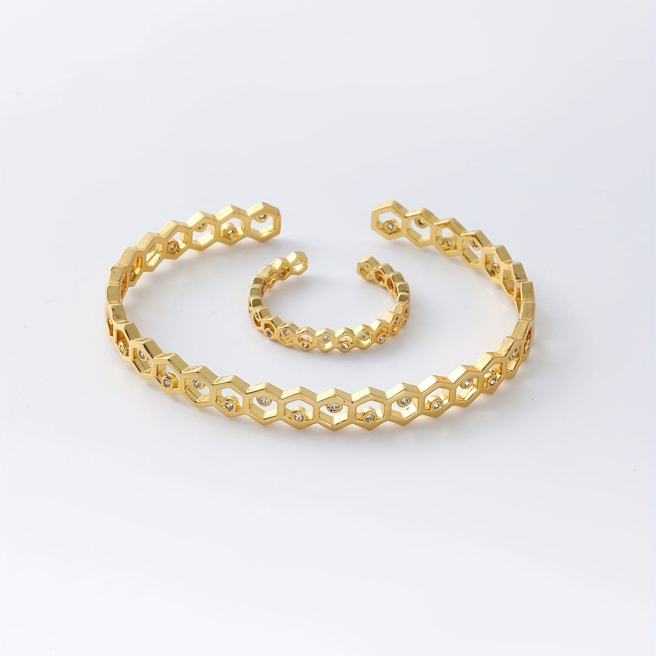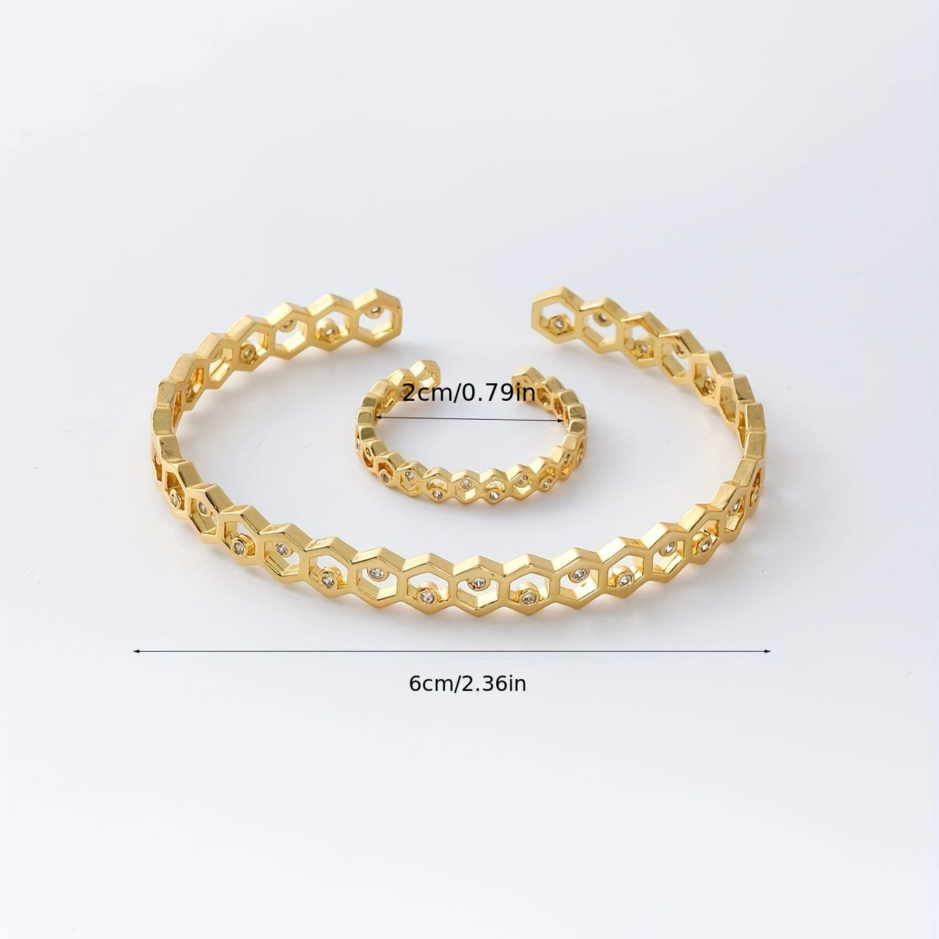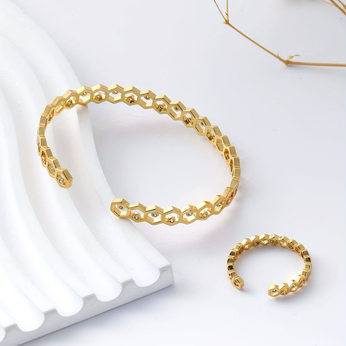 Elevate your style with this set of bangle and cuff ring plated in 14k gold. Embellished with zircon stones, this classic set is perfect for daily wear or special occasions.