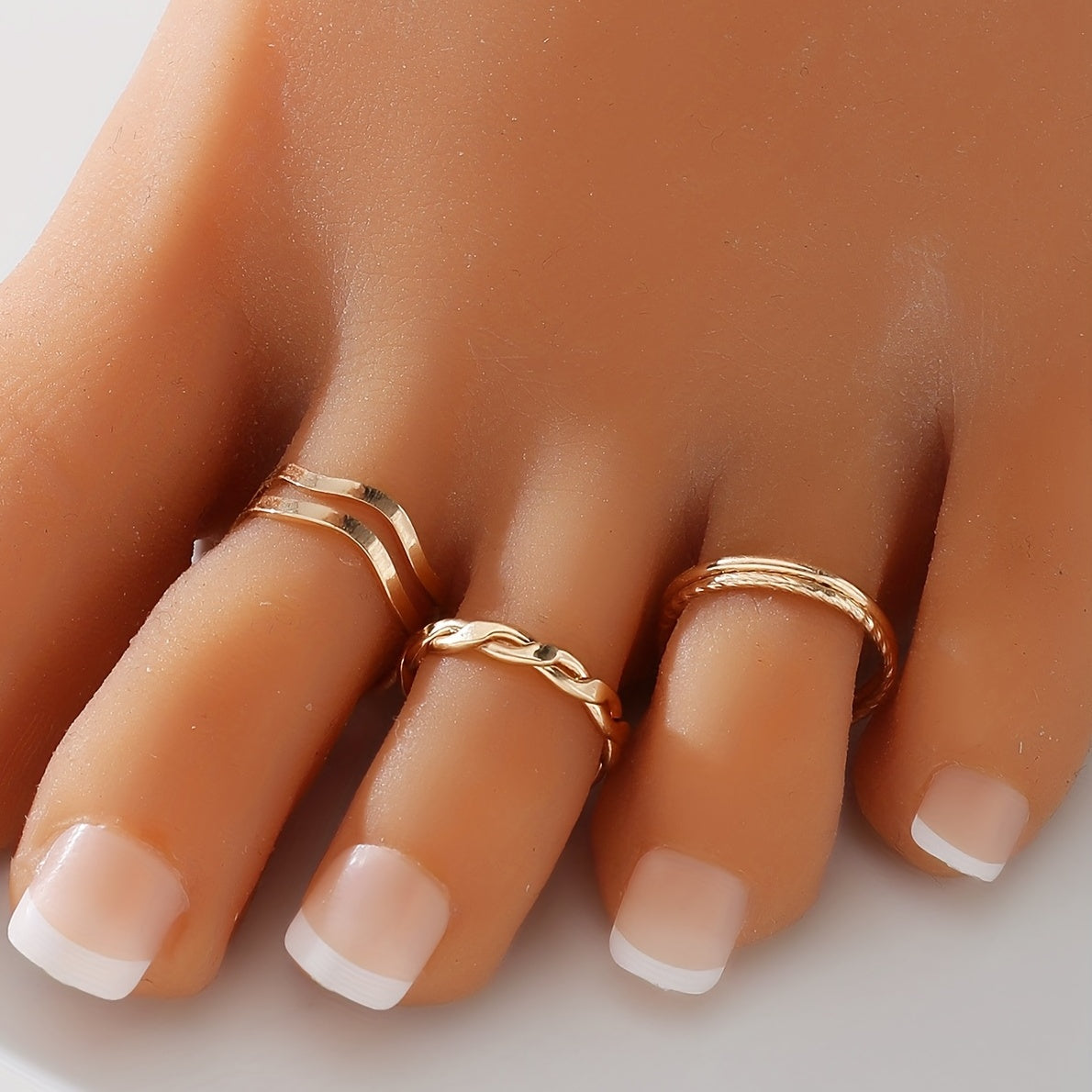 Enhance your beach look with this 3-piece foot ring set. Made of durable metal, these rings add a touch of style to your feet while enjoying the sun and sand.