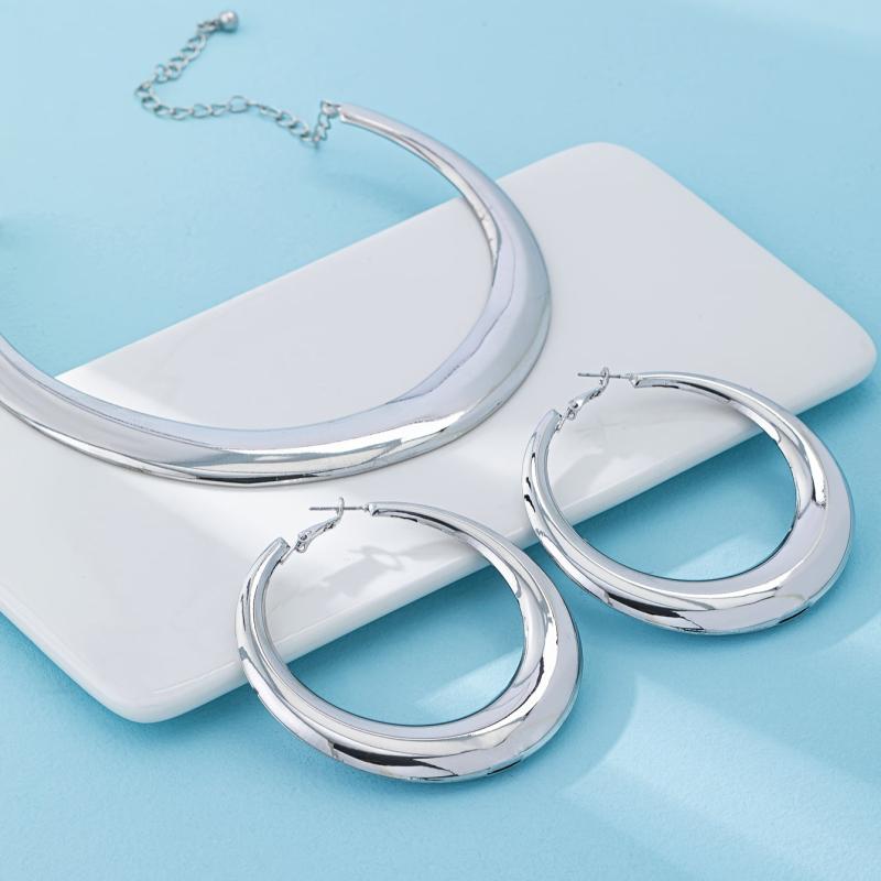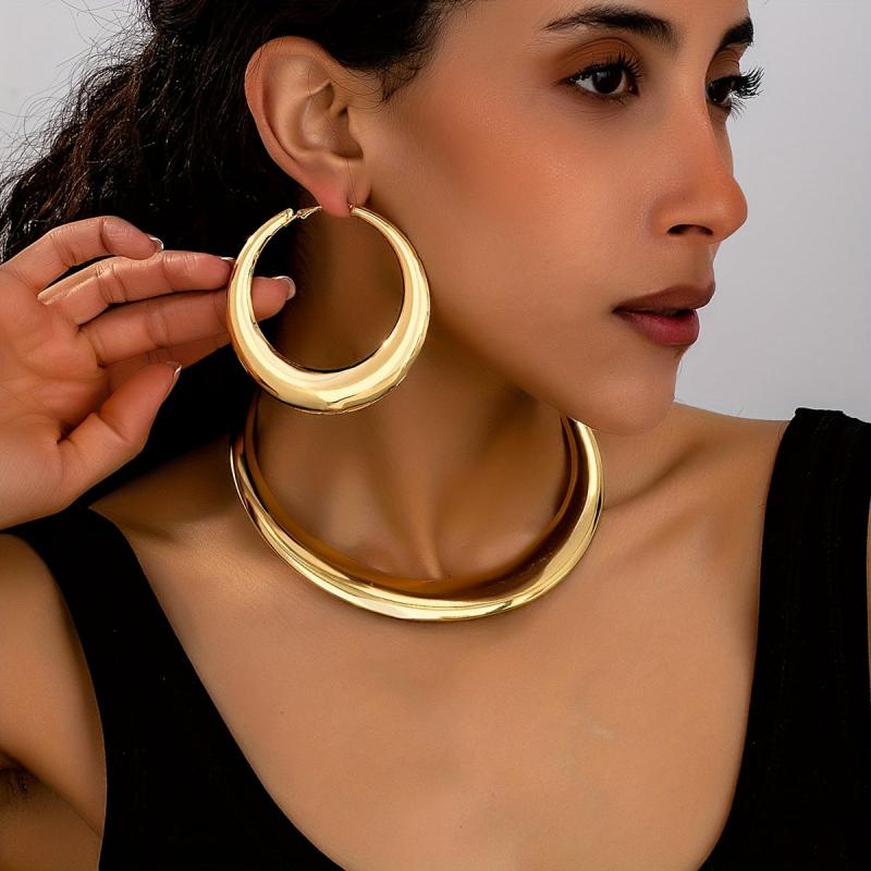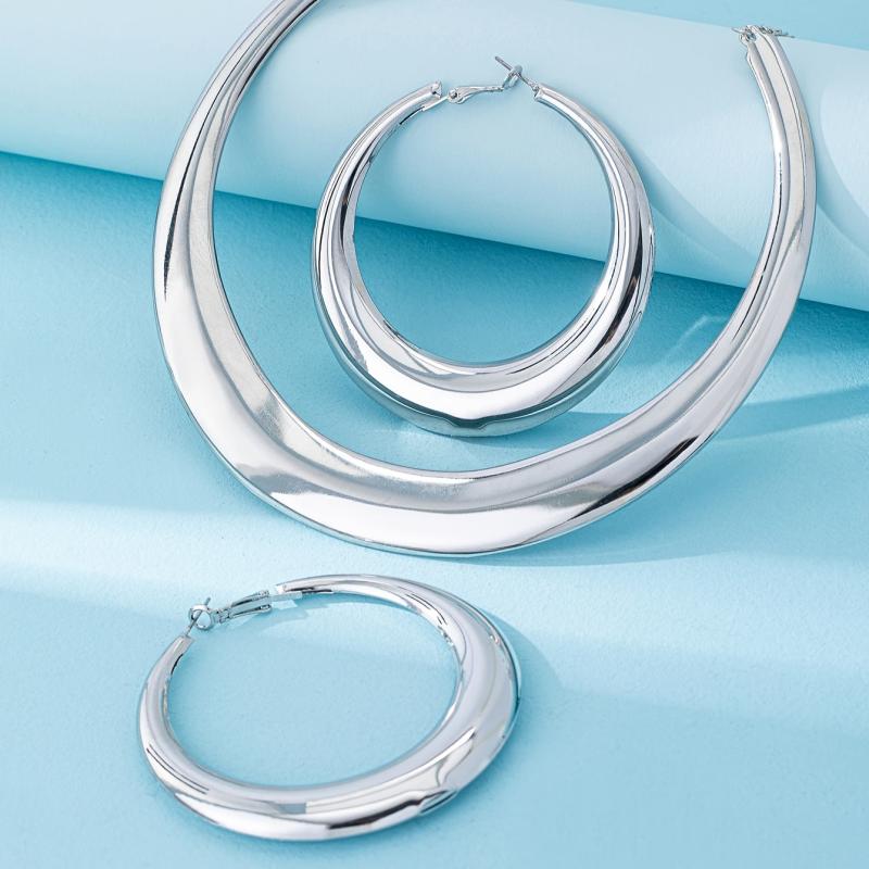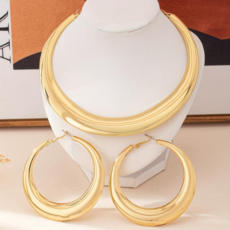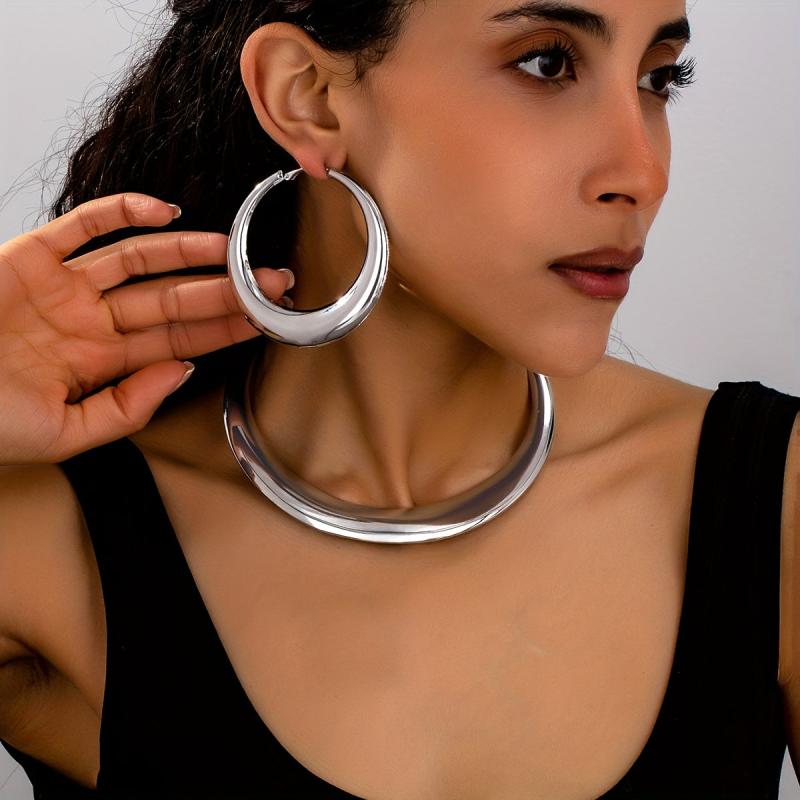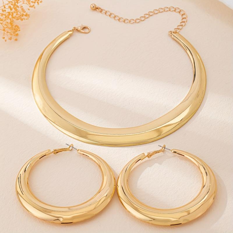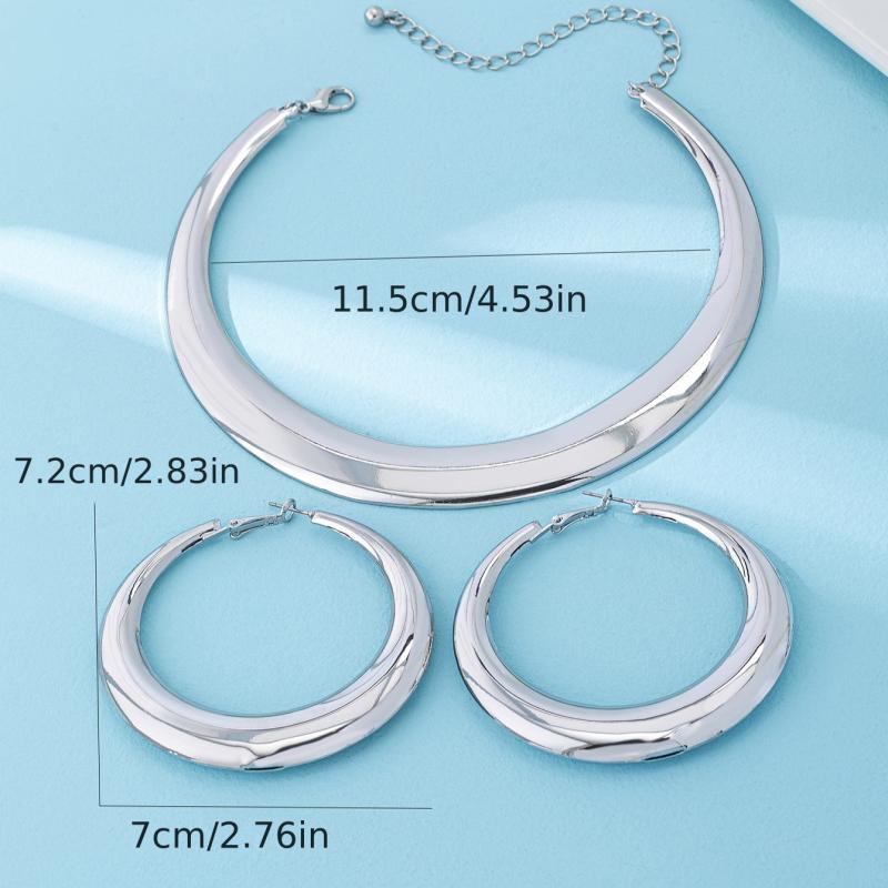 Add style to your outfit with this set of 3 trendy geometric necklaces and earrings. Perfect for daily wear, parties, and casual occasions.