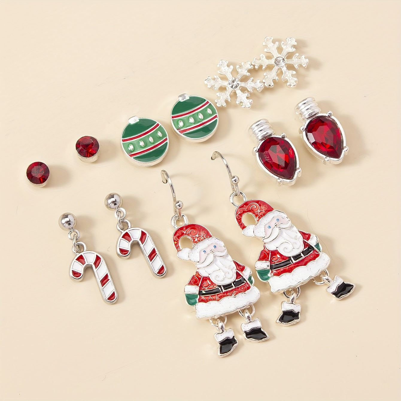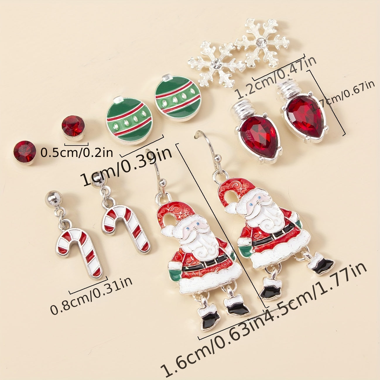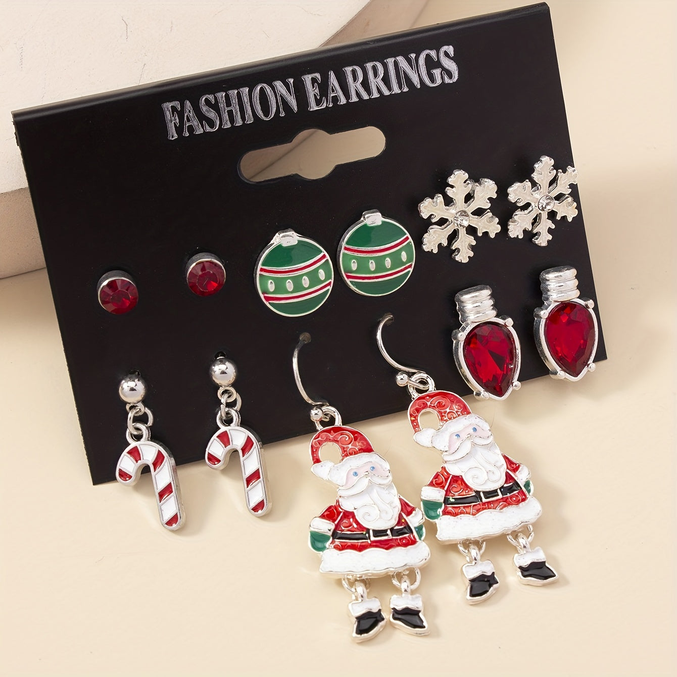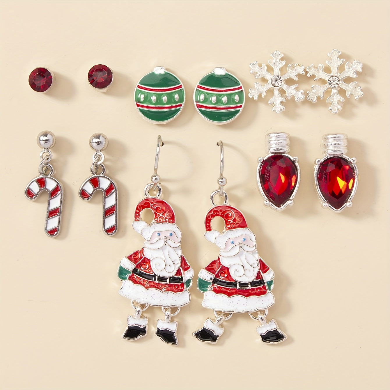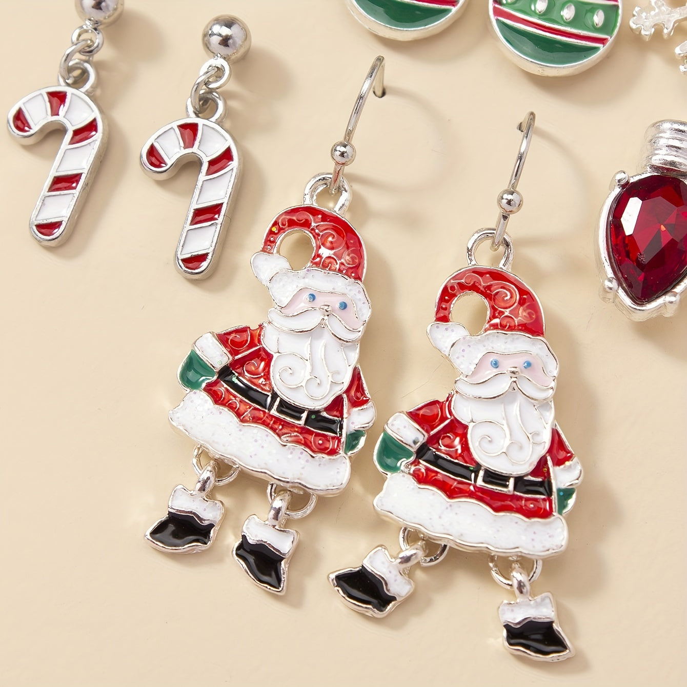 Adorable set of Santa Claus Christmas candy cane bell earrings in cartoon style. A delicate and festive gift for women and girls.