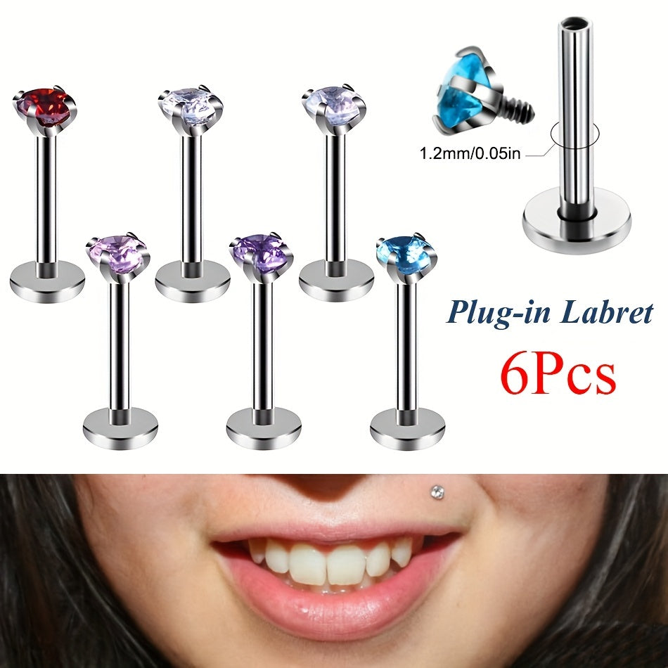 6pcs Plug In Labret Stud Nose Lip Ear Rings Set
