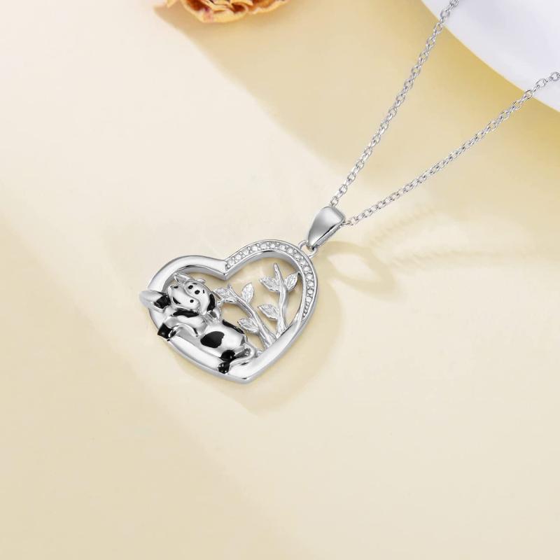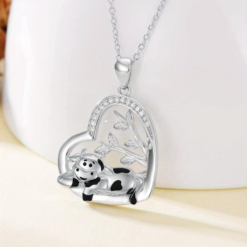 Elegant 925 sterling silver necklace featuring a cow design with a tree of life pendant. Perfect accessory for women who love nature and animals.