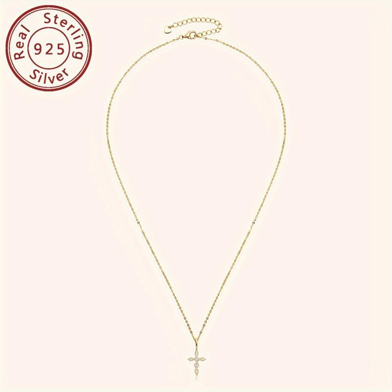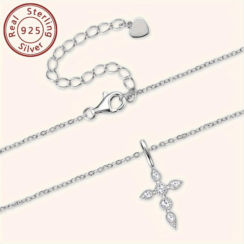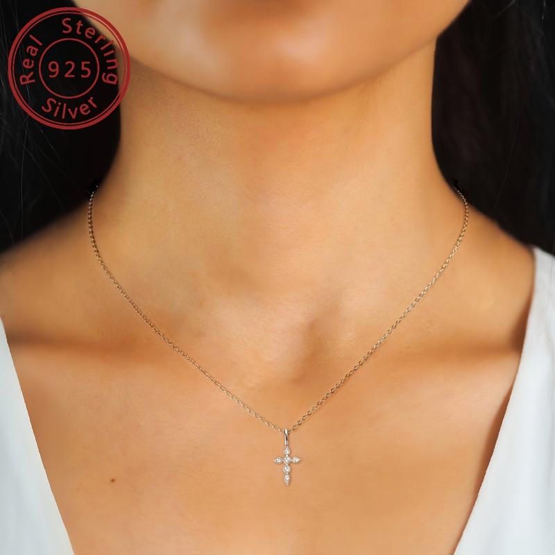 925 Silver Cross Pendant Necklace with Moissanite Stones - Religious Symbol