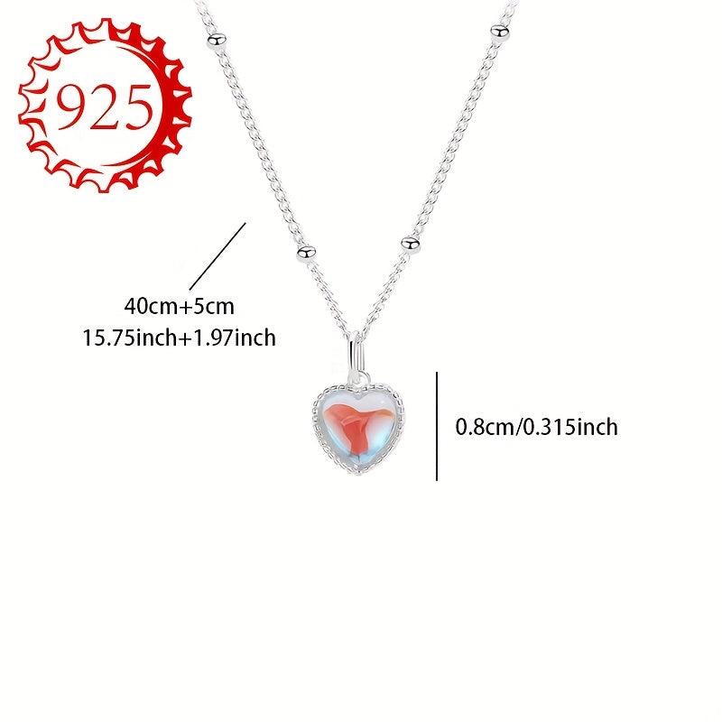 Add a pop of color to your outfit with this fashionable 925 silver heart pendant necklace. The gradient design adds a touch of whimsy to the piece. Hypoallergenic and versatile, this necklace is perfect for everyday wear.