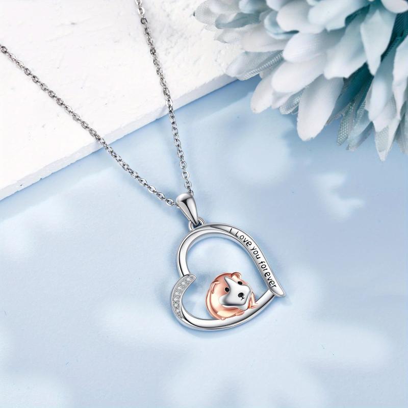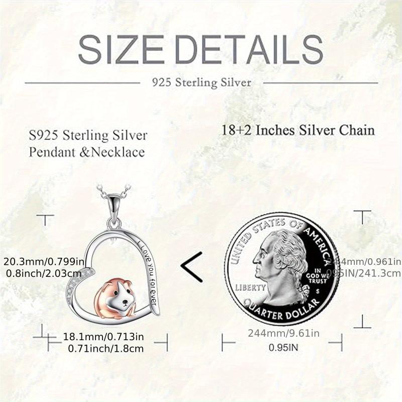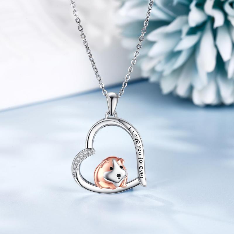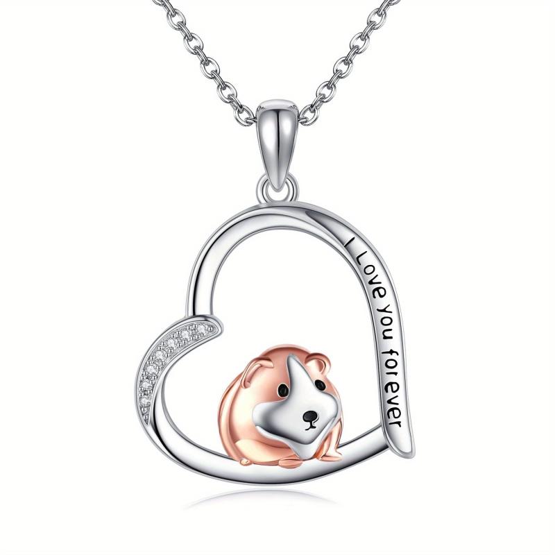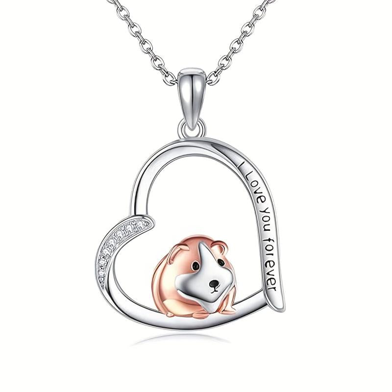 925 Silver Guinea Pig Heart Pendant Necklace
