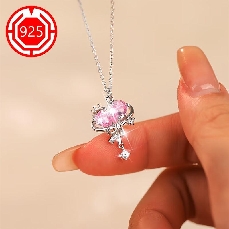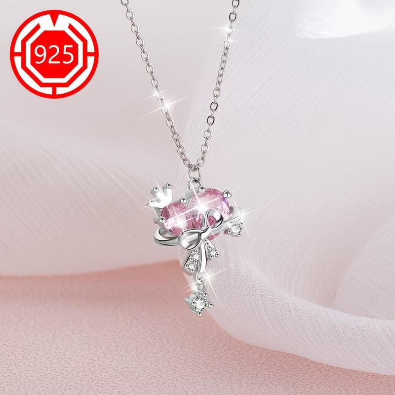This 925 silver necklace features a charming sweetheart princess bow tie design, perfect for couples and friends. It is a unique and sweet gift that is hypoallergenic and suitable for daily wear.