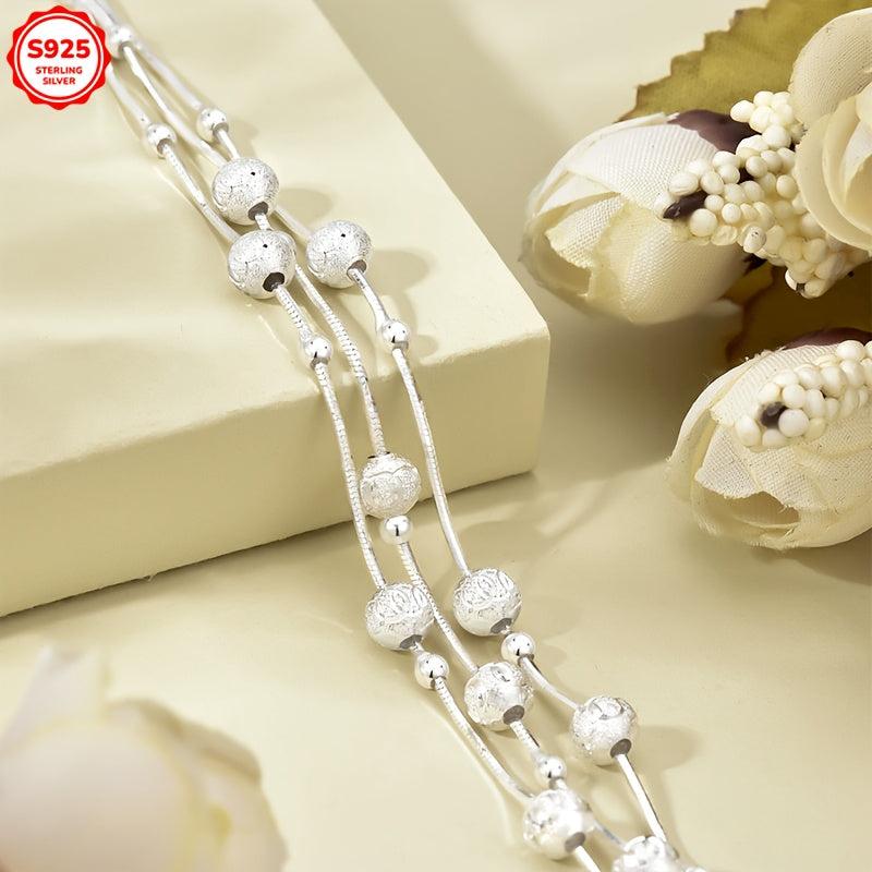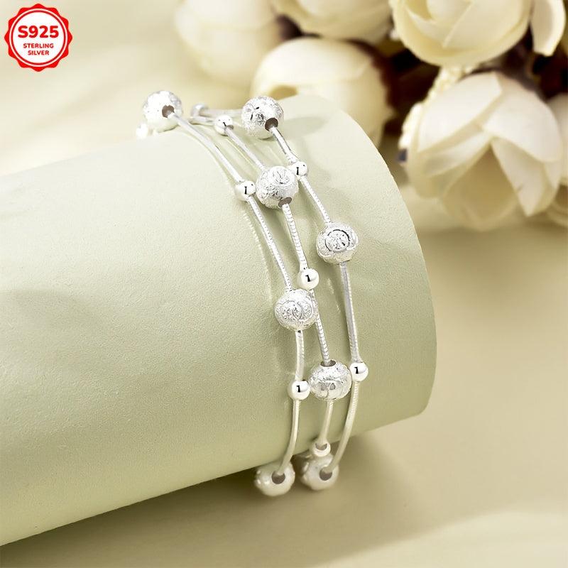 925 Silver Minimalist Beaded Snake Bone Bracelet