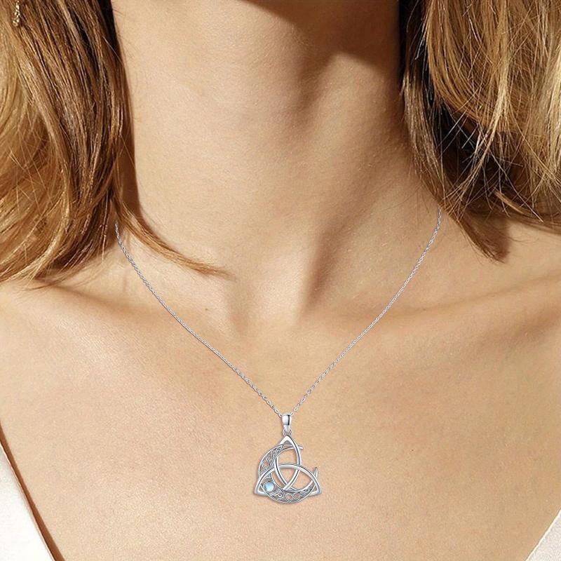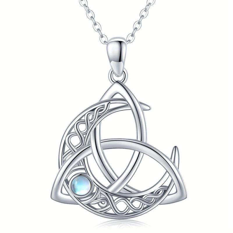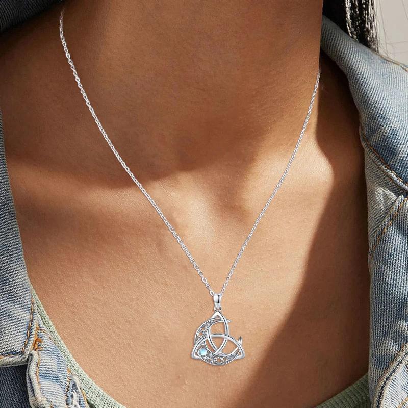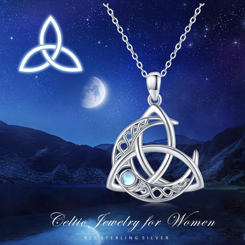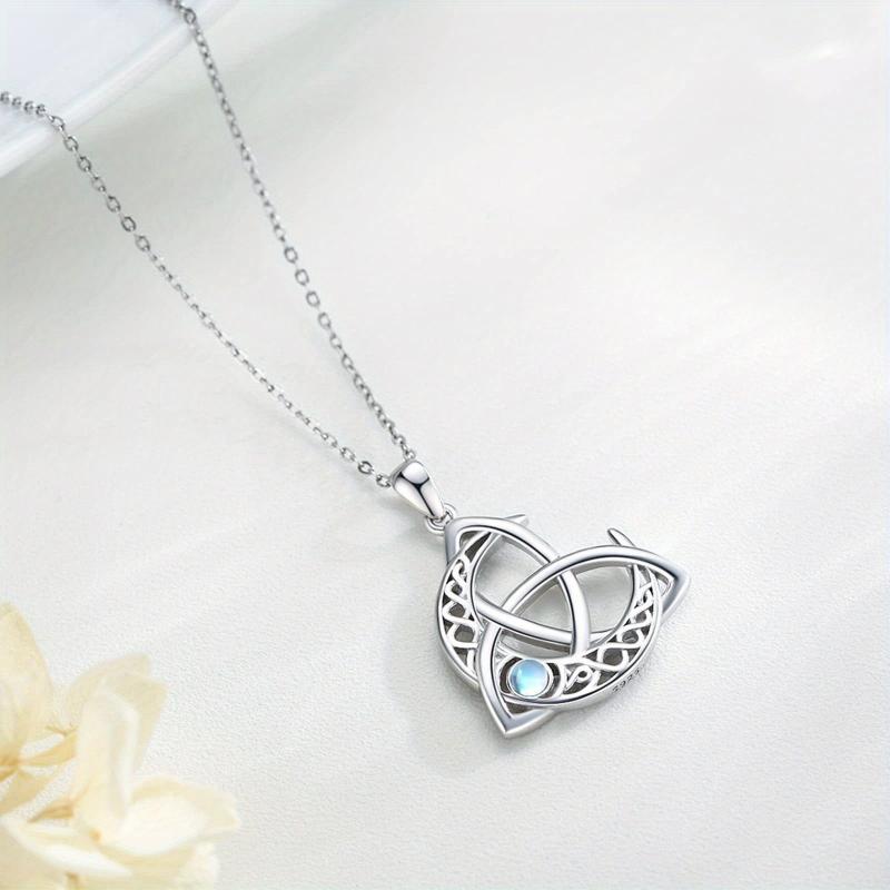 925 Silver Moonstone Moon Pendant Necklace Celtic Jewelry for Women