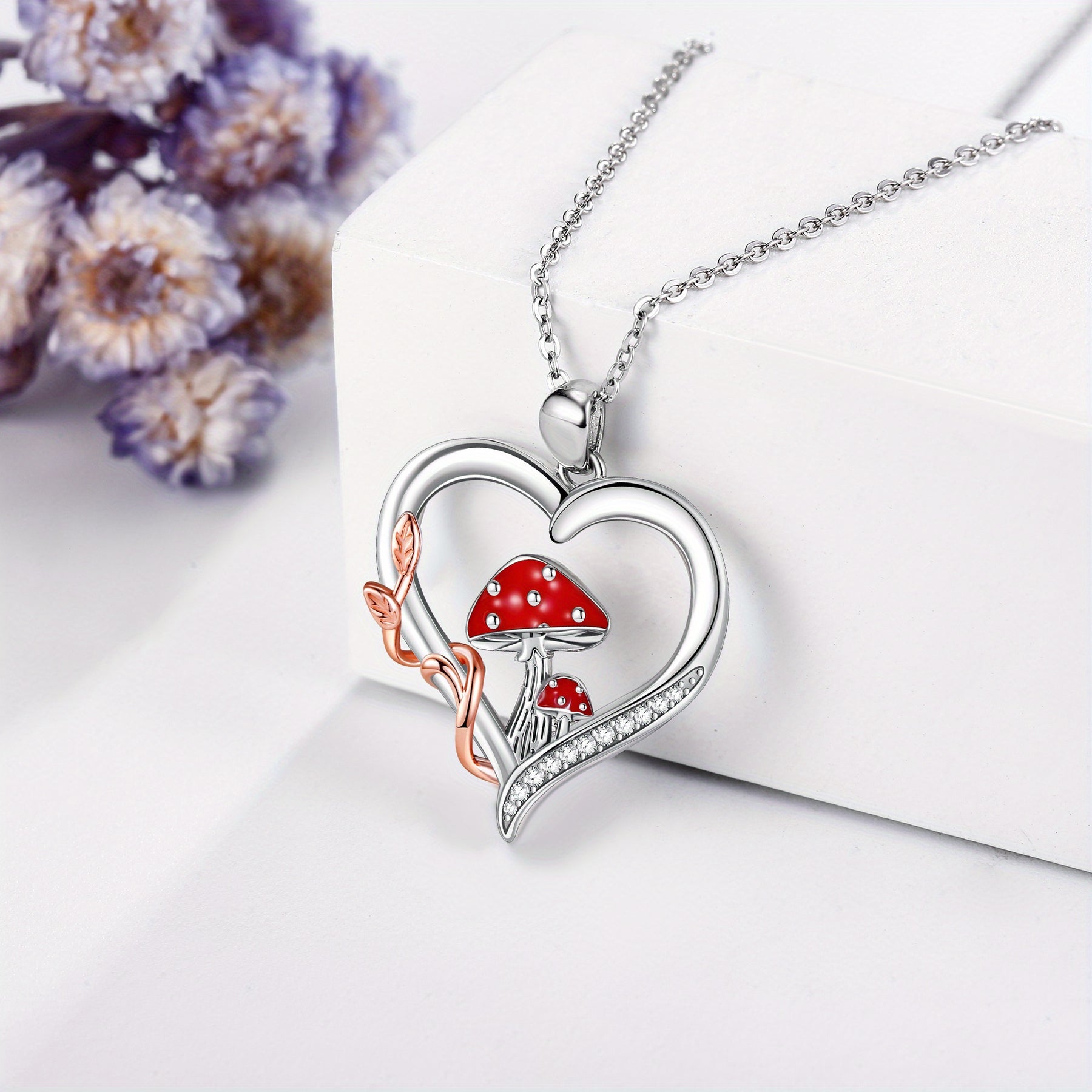 This stunning necklace features a heart-shaped pendant adorned with a whimsical mushroom design. Made from high-quality 925 sterling silver, it adds a touch of nature-inspired charm to any outfit.