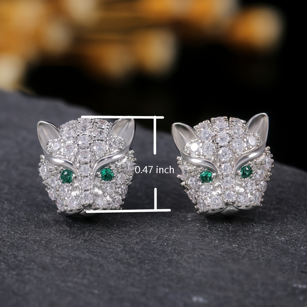 925 Silver Plated Leopard Head Earrings Crystal Women Party Jewelry