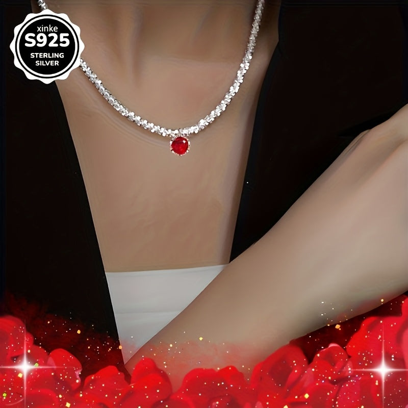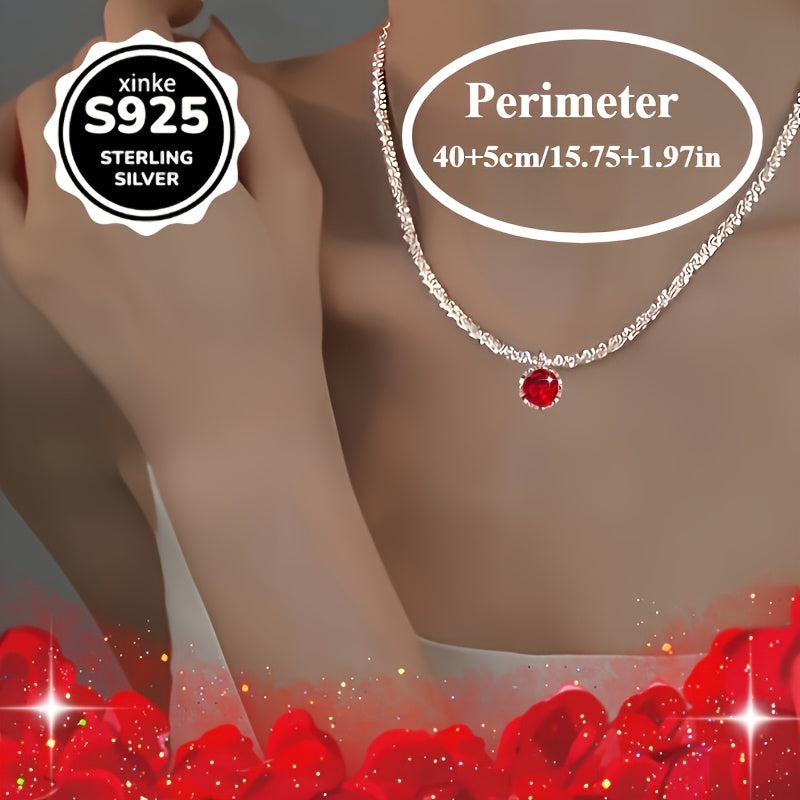 925 Silver Red Zirconia Pendant Necklace for Daily Parties & Gatherings