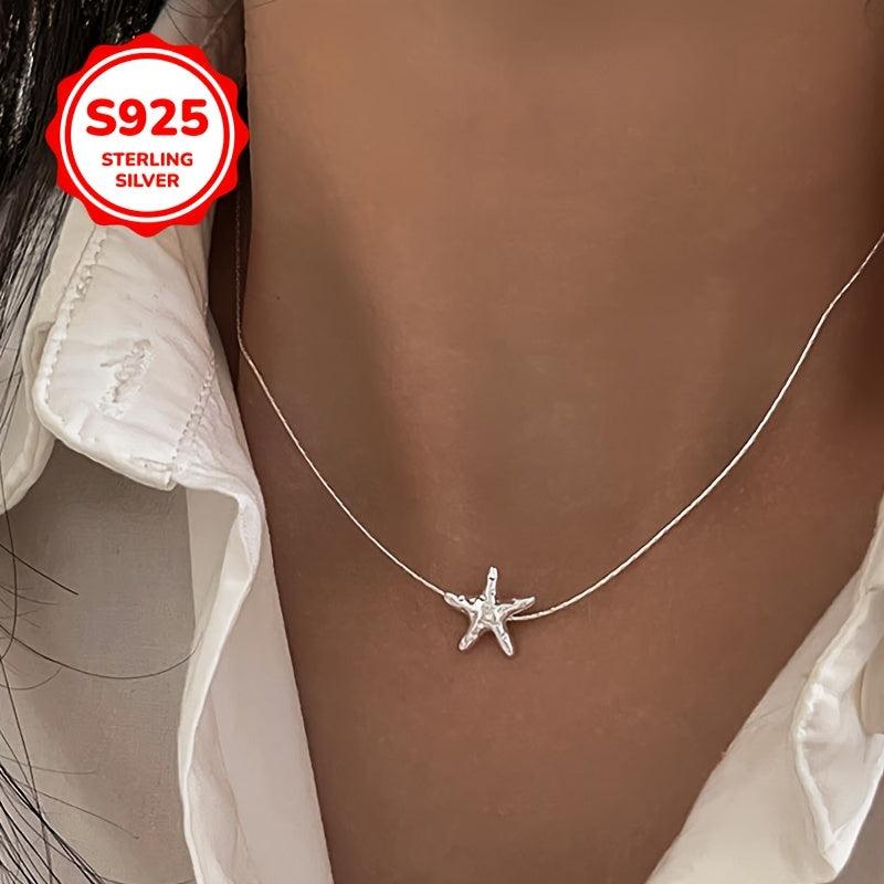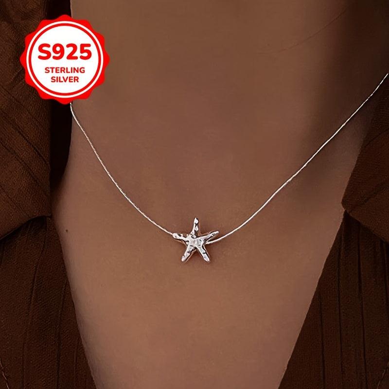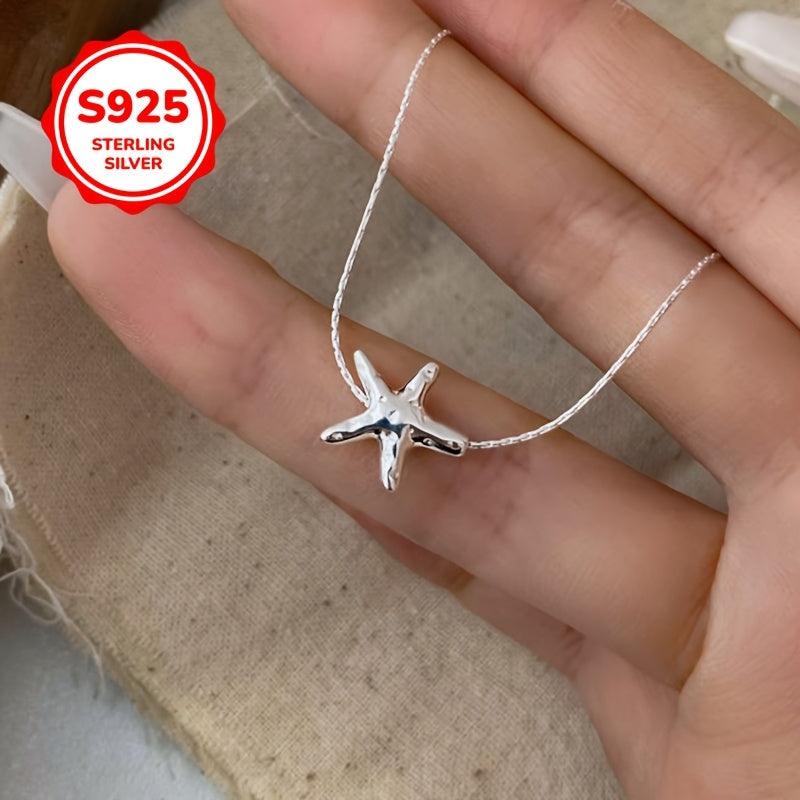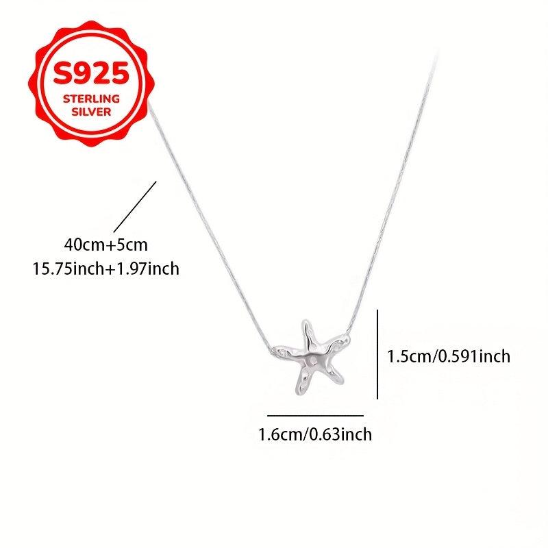 This 925 silver necklace features a small starfish pendant with an irregular texture, making it stylish and versatile for daily wear. Perfect as a gift for couples, friends, or yourself.